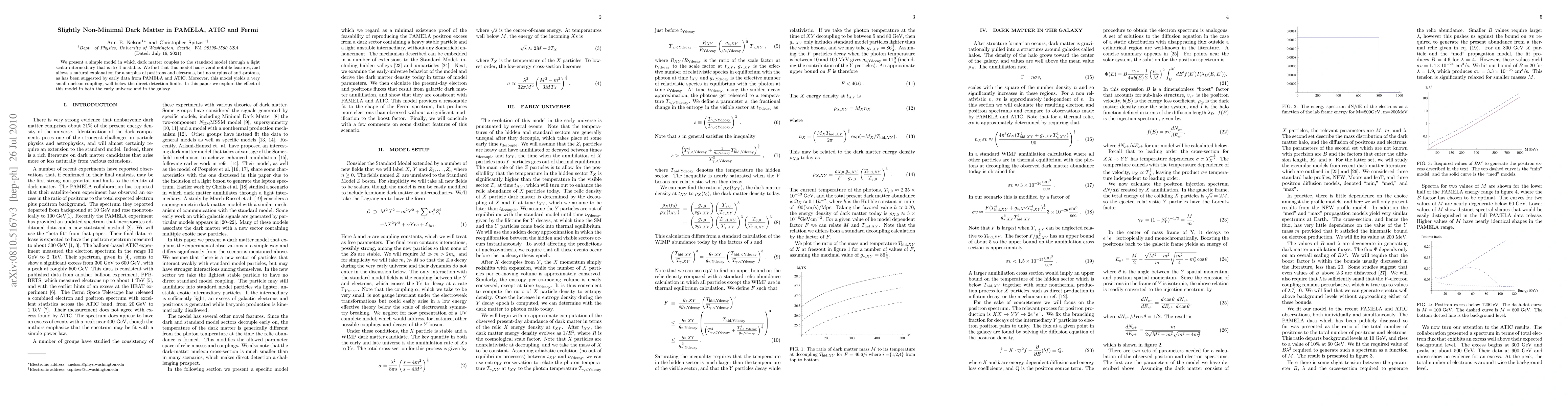 We present a simple model in which dark matter couples to the standard model through a light scalar intermediary that is itself unstable. We find this model has several notable features, and allows a natural explanation for a surplus of positrons, but no surplus of anti-protons, as has been suggested by early data from PAMELA and ATIC. Moreover, this model yields a very small nucleon coupling, well below the direct detection limits. In this paper we explore the effect of this model in both the early universe and in the galaxy.