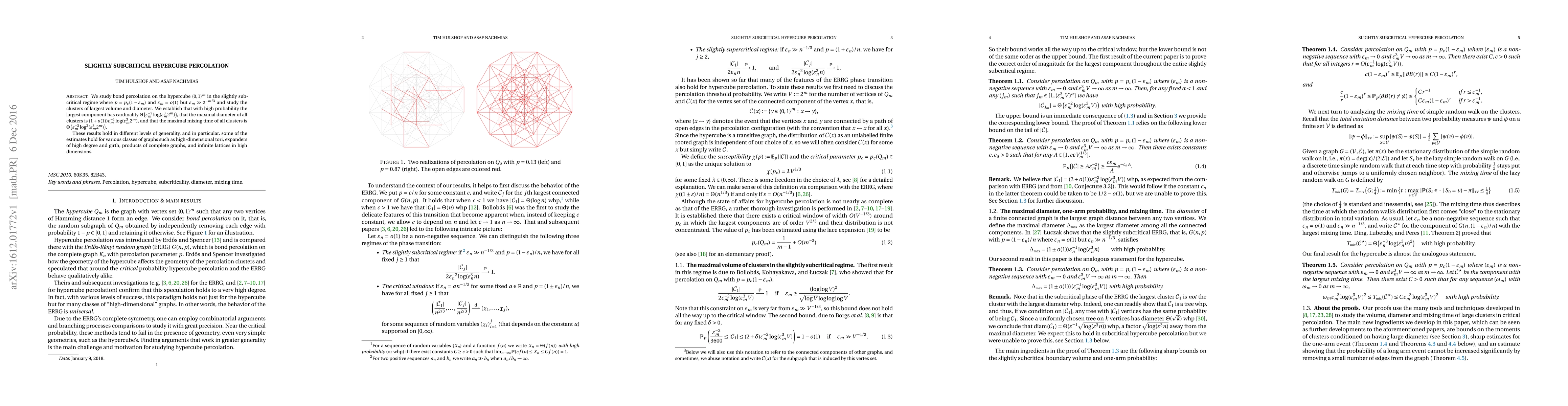 We study bond percolation on the hypercube $\{0,1\}^m$ in the slightly subcritical regime where $p = p_c (1-\varepsilon_m)$ and $\varepsilon_m = o(1)$ but $\varepsilon_m \gg 2^{-m/3}$ and study the clusters of largest volume and diameter. We establish that with high probability the largest component has cardinality $\Theta\left(\varepsilon_m^{-2} \log(\varepsilon_m^3 2^m)\right)$, that the maximal diameter of all clusters is $(1+o(1)) \varepsilon_m^{-1} \log(\varepsilon_m^3 2^m)$, and that the maximal mixing time of all clusters is $\Theta\left(\varepsilon_m^{-3} \log^2(\varepsilon_m^3 2^m)\right)$. These results hold in different levels of generality, and in particular, some of the estimates hold for various classes of graphs such as high-dimensional tori, expanders of high degree and girth, products of complete graphs, and infinite lattices in high dimensions.