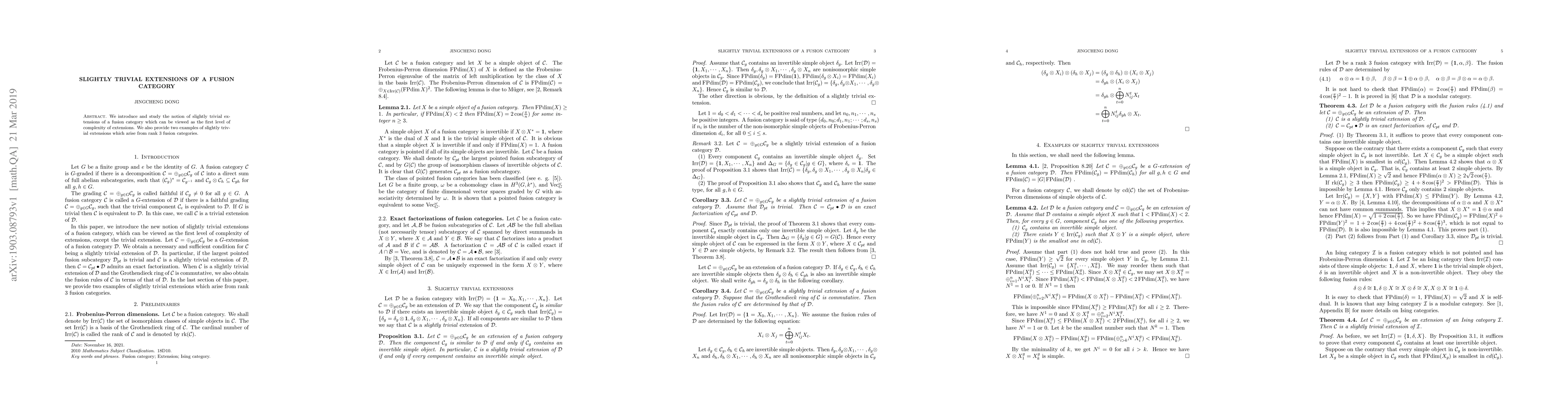 Researchers introduce a concept of 'slightly trivial extensions' of fusion categories, exploring their structure and providing examples from rank 3 categories.
