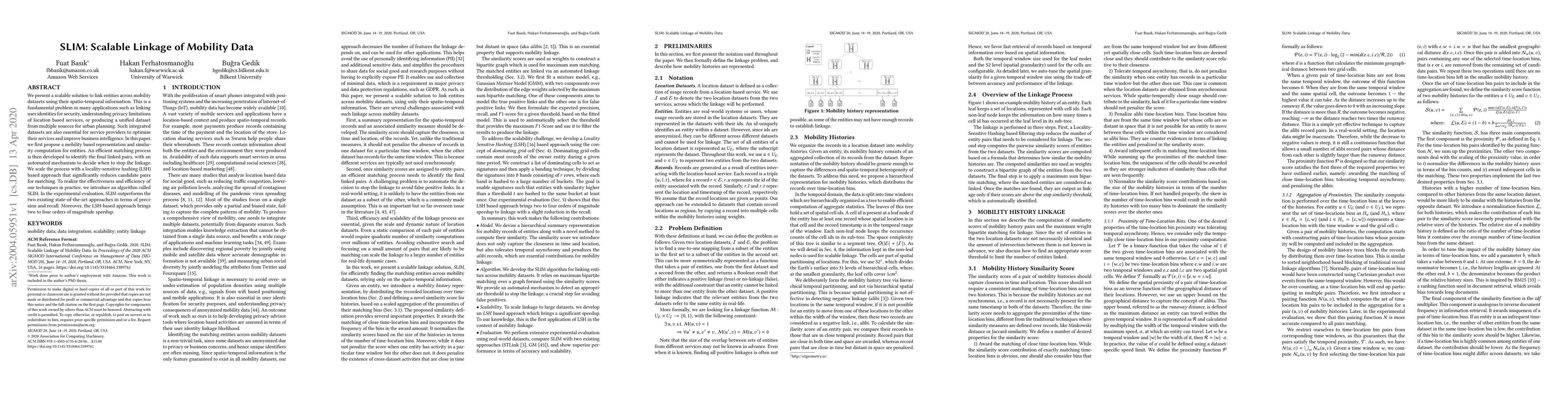 This paper presents SLIM, a scalable method to link entities across mobility datasets using spatio-temporal information, achieving significant speedup and outperforming existing approaches in terms of precision and recall.