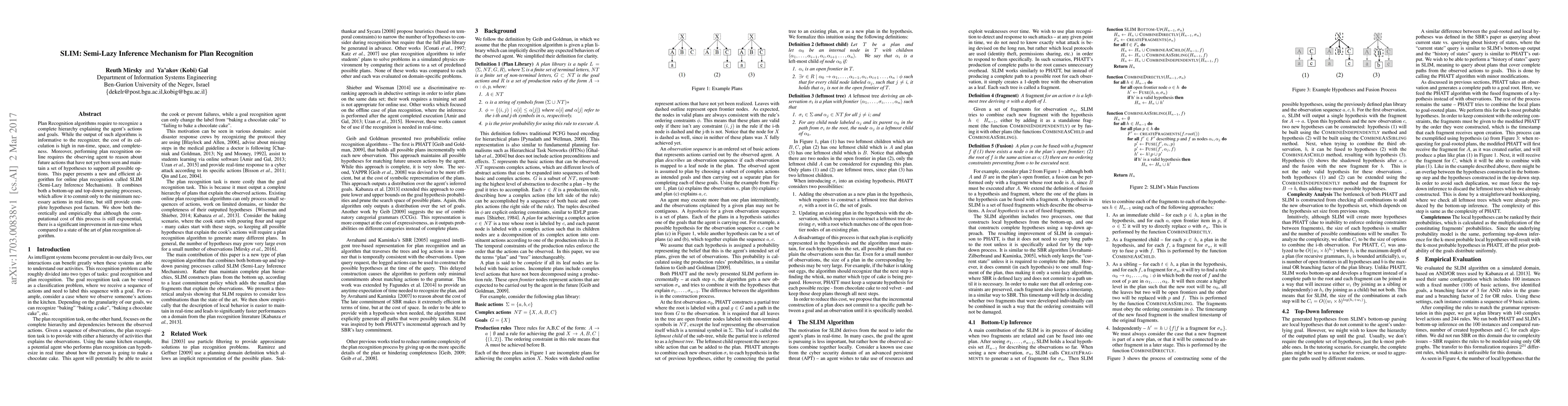 Plan Recognition algorithms require to recognize a complete hierarchy explaining the agent's actions and goals. While the output of such algorithms is informative to the recognizer, the cost of its calculation is high in run-time, space, and completeness. Moreover, performing plan recognition online requires the observing agent to reason about future actions that have not yet been seen and maintain a set of hypotheses to support all possible options. This paper presents a new and efficient algorithm for online plan recognition called SLIM (Semi-Lazy Inference Mechanism). It combines both a bottom-up and top-down parsing processes, which allow it to commit only to the minimum necessary actions in real-time, but still provide complete hypotheses post factum. We show both theoretically and empirically that although the computational cost of this process is still exponential, there is a significant improvement in run-time when compared to a state of the art of plan recognition algorithm.