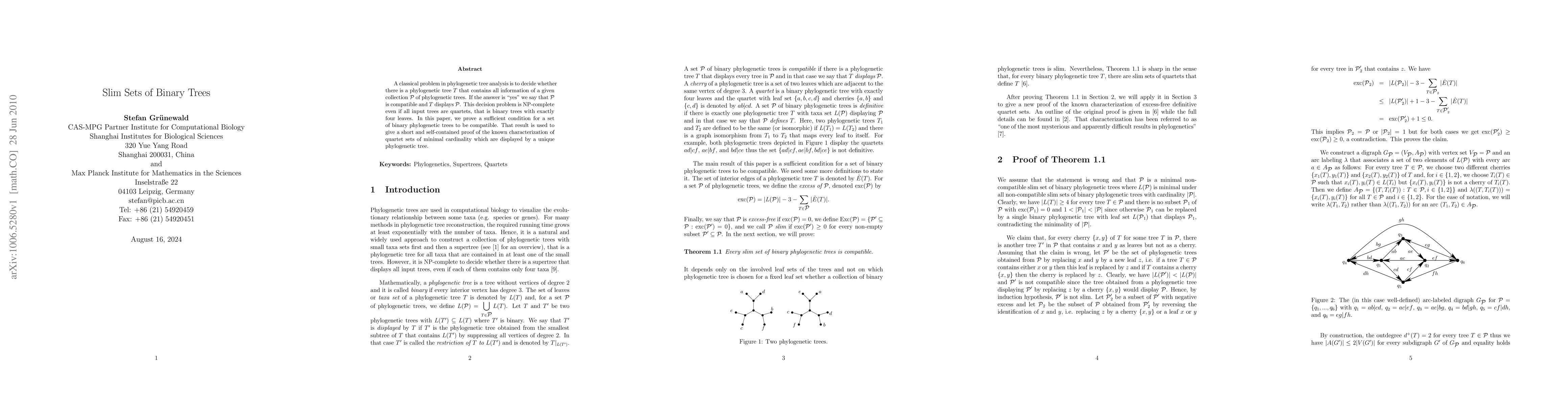 Researchers found a sufficient condition for a set of binary phylogenetic trees to be compatible, helping solve an NP-complete decision problem in tree analysis. This breakthrough enables a short proof of the characterization of minimal quartet sets displayed by unique phylogenetic trees.