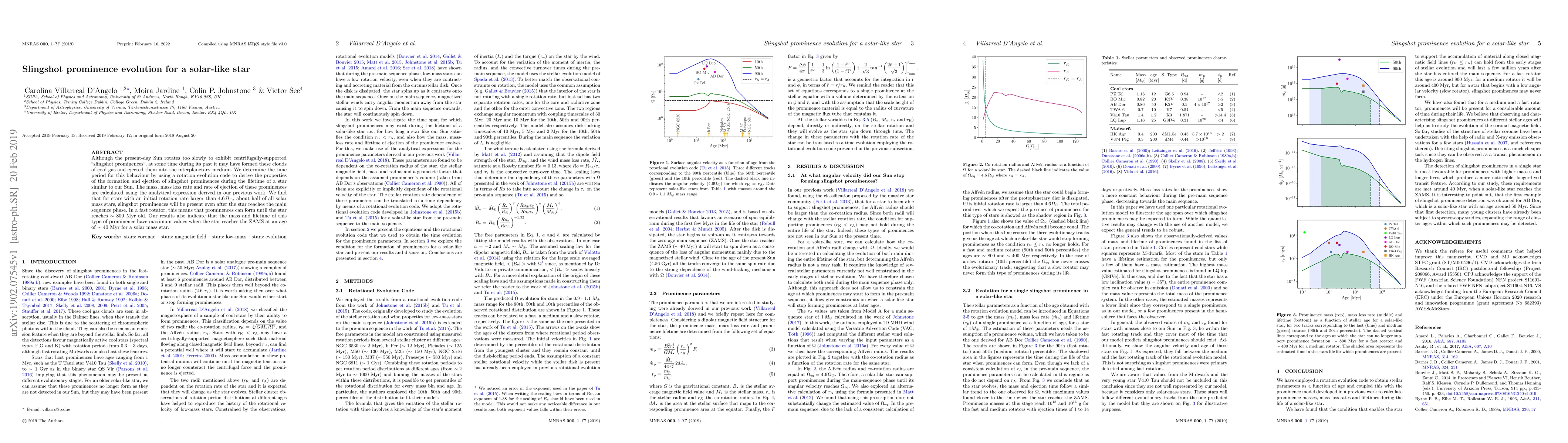 Although the present-day Sun rotates too slowly to exhibit centrifugally-supported 'slingshot prominences', at some time during its past it may have formed these clouds of cool gas and ejected them into the interplanetary medium. We determine the time period for this behaviour by using a rotation evolution code to derive the properties of the formation and ejection of slingshot prominences during the lifetime of a star similar to our Sun. The mass, mass loss rate and rate of ejection of these prominences are calculated using the analytical expression derived in our previous work. We find that for stars with an initial rotation rate larger than $4.6\, \Omega_\odot$, about half of all solar mass stars, slingshot prominences will be present even after the star reaches the main sequence phase. In a fast rotator, this means that prominences can form until the star reaches $\sim 800$ Myr old. Our results also indicate that the mass and lifetime of this type of prominence have maximum values when the star reaches the ZAMS at an age of $\sim 40$ Myr for a solar mass star.