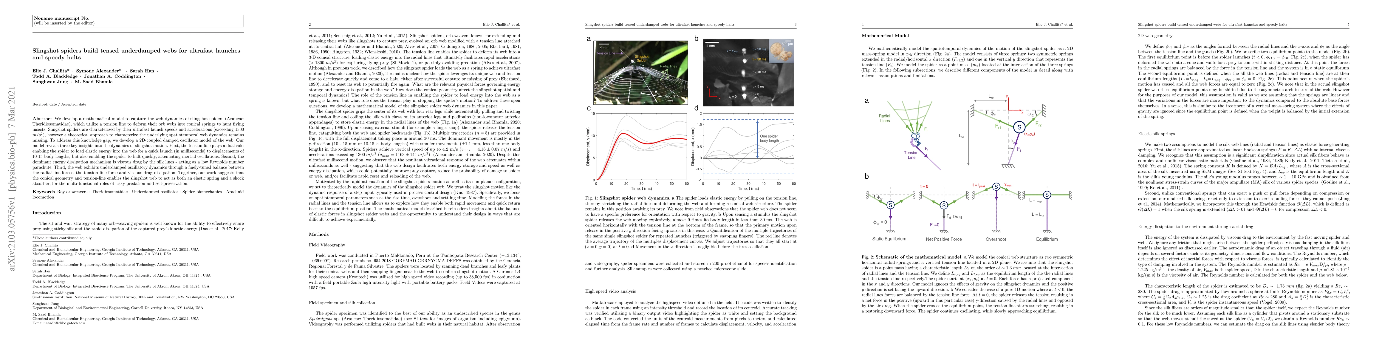 Slingshot spiders build webs that act like springs to launch themselves at high speeds and quickly halt, with a balance between elastic energy, viscous drag, and oscillatory dynamics.