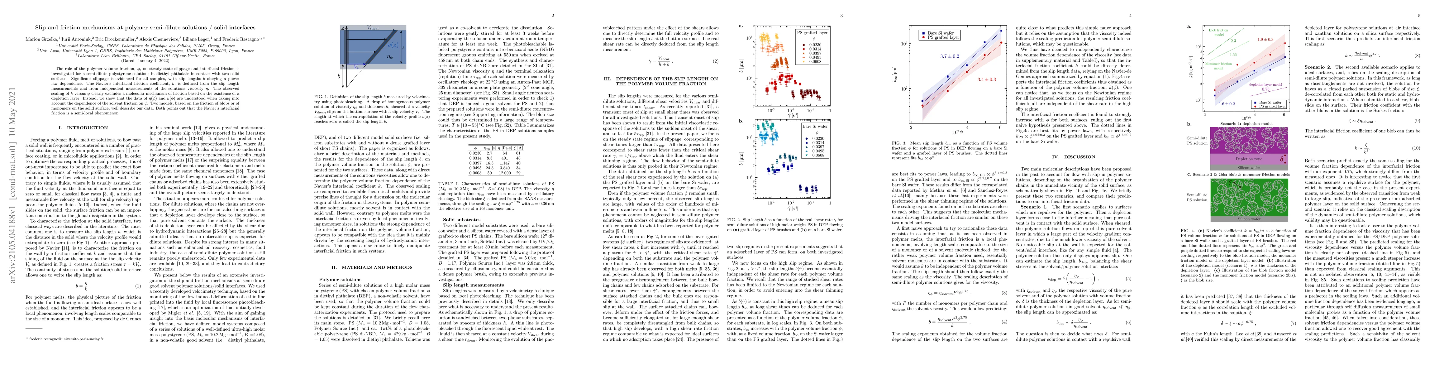 This study investigates the impact of polymer volume fraction on steady-state slippage and interfacial friction in semi-dilute polystyrene solutions in contact with solid surfaces, revealing significant slippage and a power law dependence of slip lengths. The findings suggest that interfacial friction is better explained by the solvent friction dependence rather than a depletion layer, with both blob and monomer friction models supporting a semi-local phenomenon.