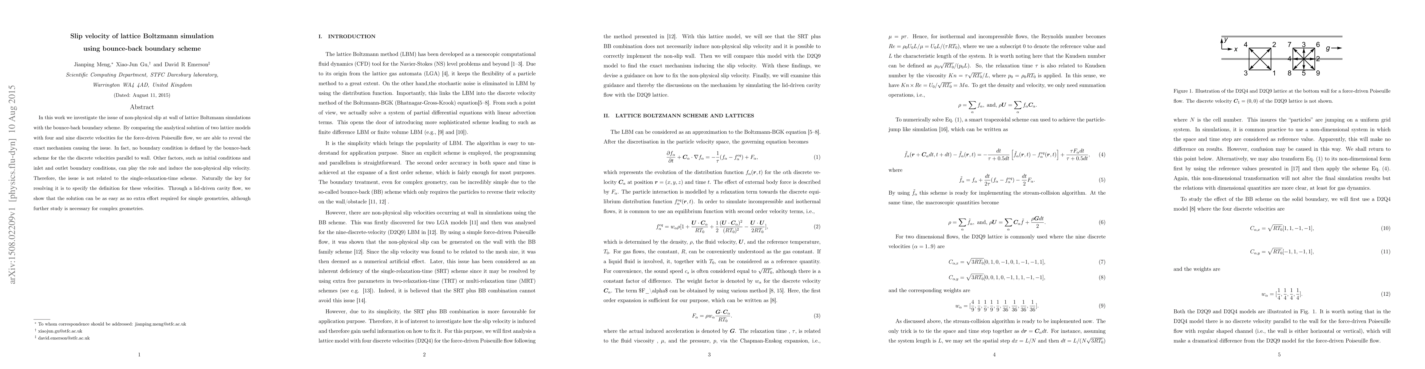 This paper investigates the non-physical slip issue in lattice Boltzmann simulations using the bounce-back boundary scheme, revealing that the scheme lacks defined boundary conditions for parallel velocities. The study suggests specifying these velocities to resolve the issue, demonstrated effectively in simple lid-driven cavity flows.