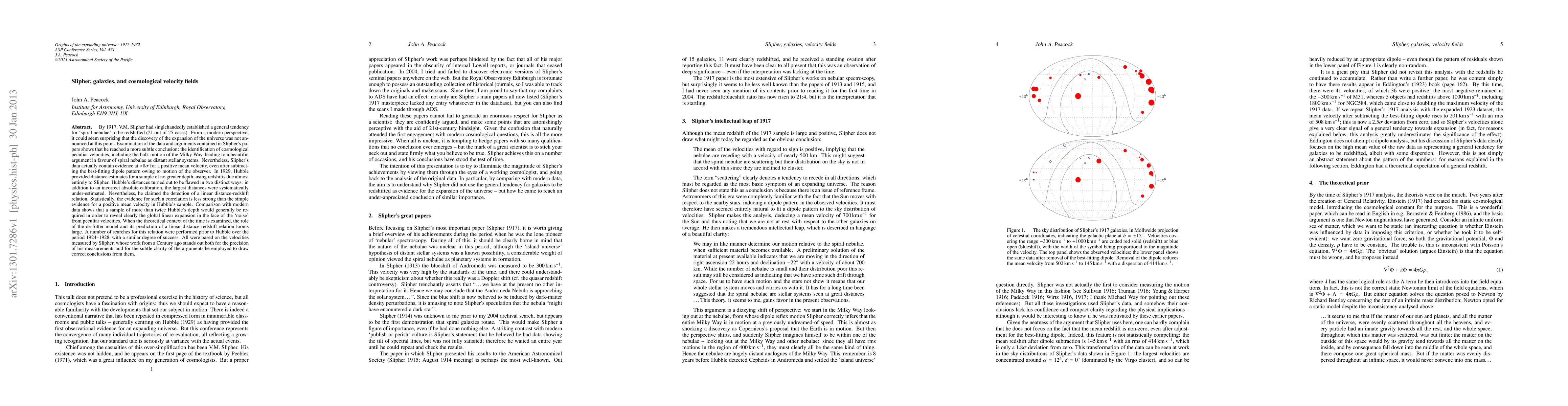 This paper examines V.M. Slipher's 1917 work on redshifted spiral nebulae, highlighting his identification of cosmological peculiar velocities and the Milky Way's bulk motion. It contrasts Slipher's precise measurements with Hubble's flawed distance estimates in 1929, noting that modern data suggests a deeper sample is needed to reveal global expansion amidst peculiar velocities.