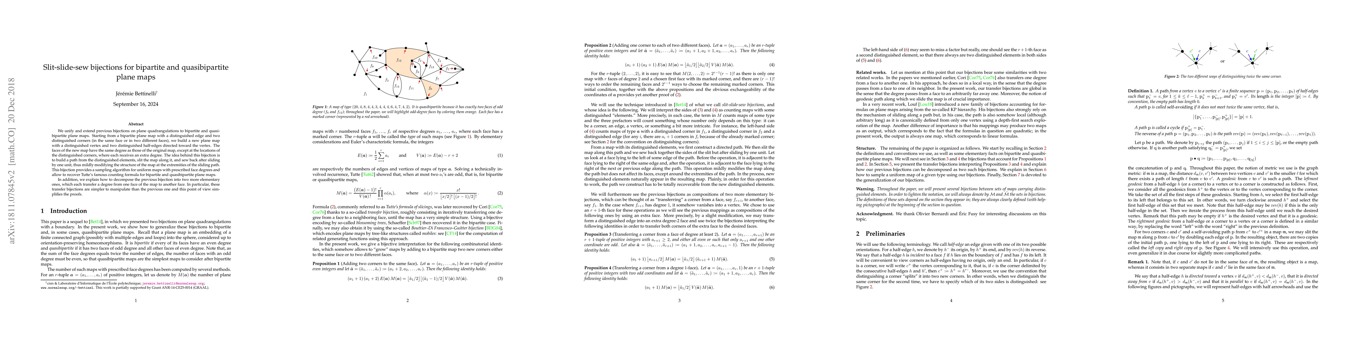 This paper presents a new bijection method for transforming bipartite and quasibipartite plane maps by "slitting, sliding, and sewing" along distinguished elements, enabling uniform sampling and recovery of Tutte's counting formula. It also decomposes the bijection into simpler transfer operations for easier manipulation and proof.