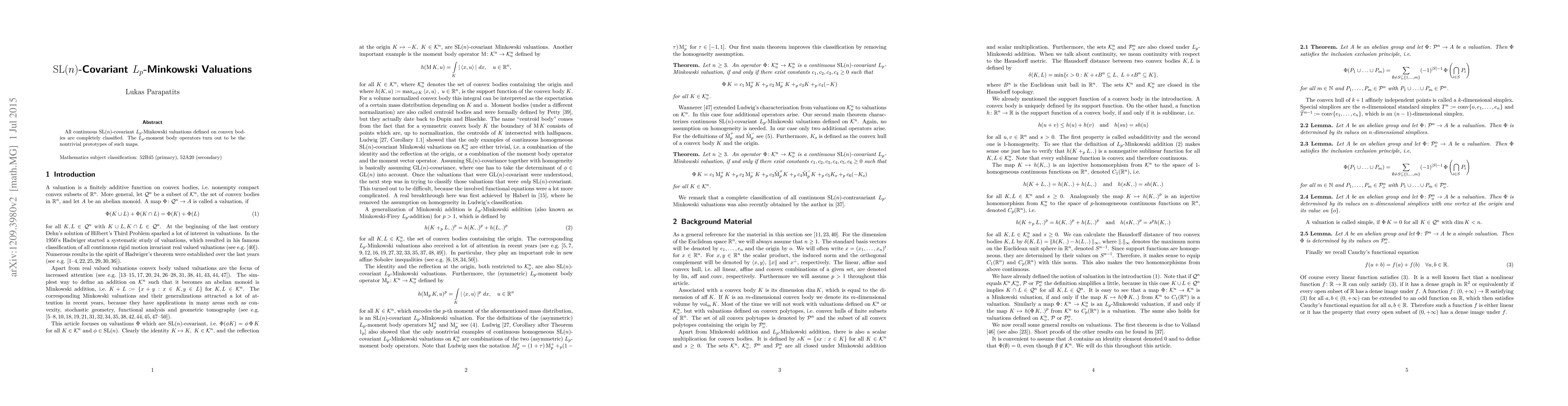 All continuous SL(n)-covariant $L_p$-Minkowski valuations defined on convex bodies are completely classified. The $L_p$-moment body operators turn out to be the nontrivial prototypes of such maps.