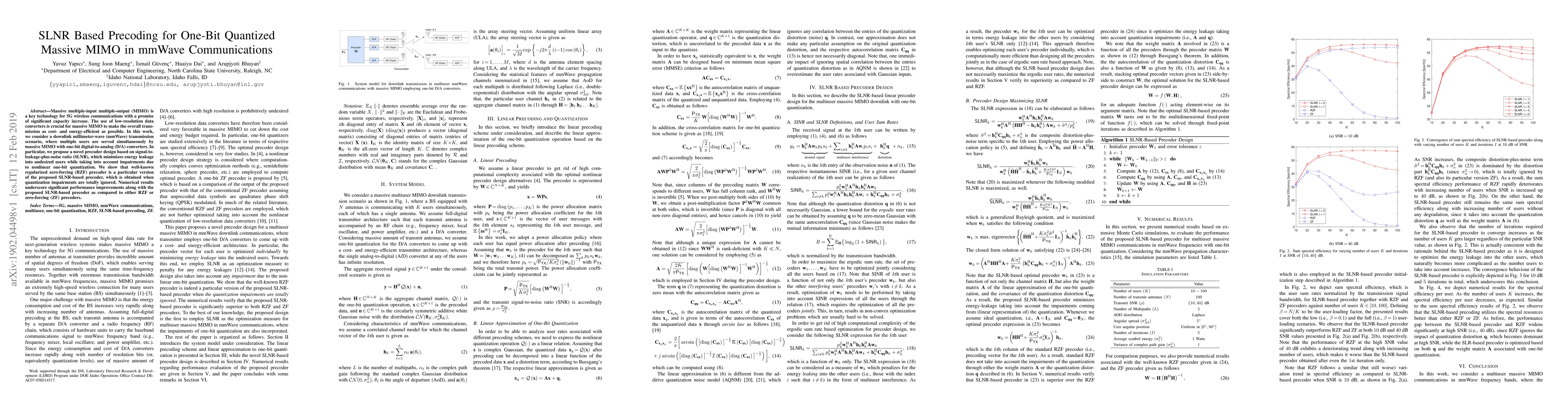 This paper proposes a novel SLNR-based precoder for one-bit quantized massive MIMO in mmWave communications to minimize energy leakage and account for quantization impairments, demonstrating significant performance improvements over regularized zero-forcing and zero-forcing precoders.