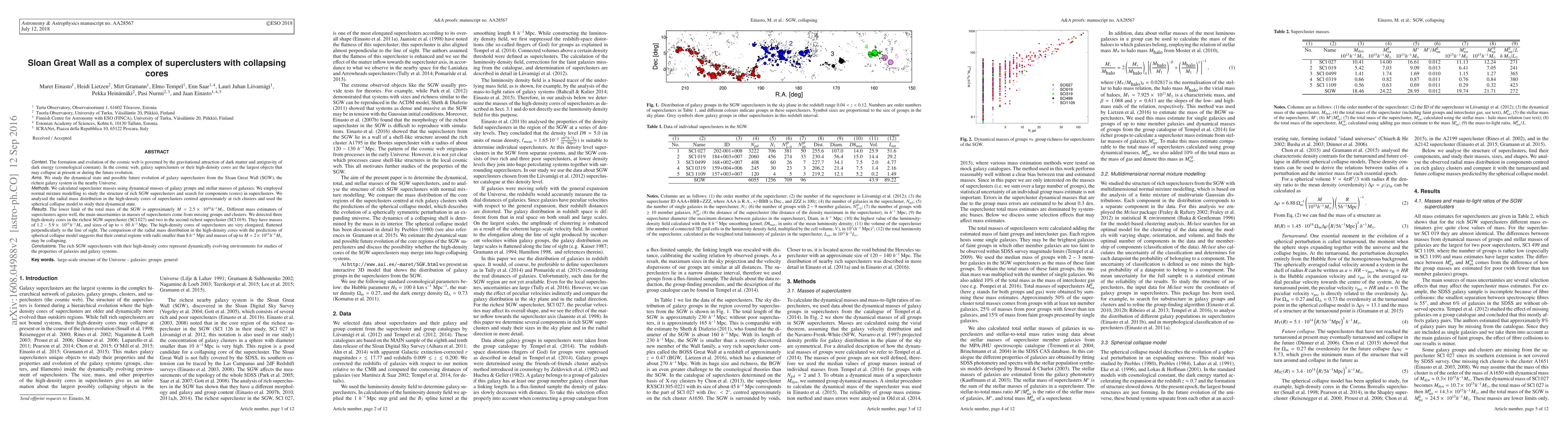This paper investigates the dynamical state and future evolution of the Sloan Great Wall (SGW), the richest galaxy system in the nearby Universe. The study finds that the SGW's high-density cores, which may be collapsing, could provide valuable insights into the properties of galaxies and galaxy systems.