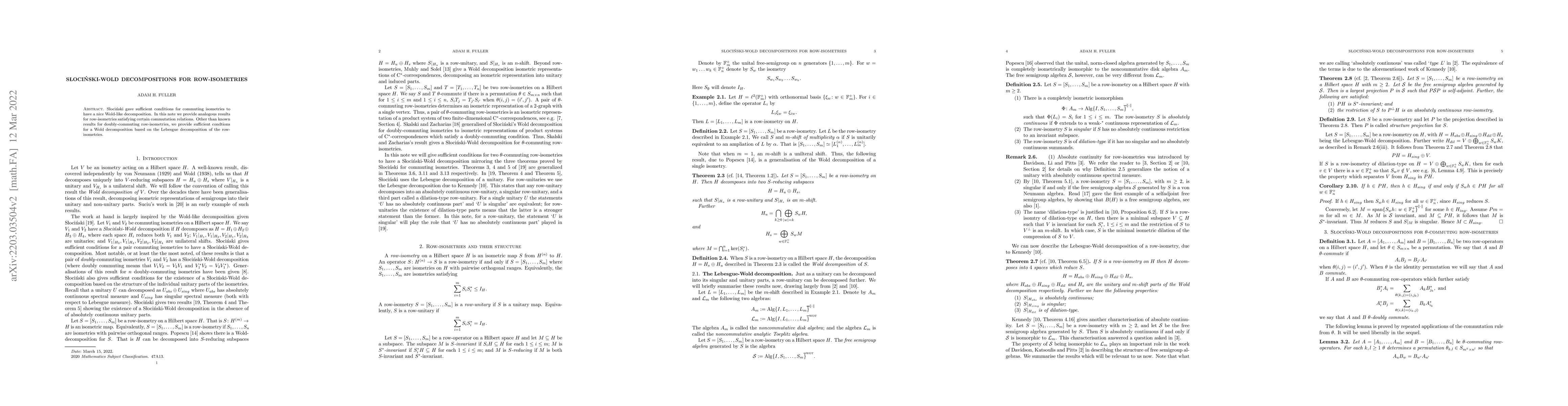 Title: Słociński-Wold decompositions for row-isometries Summary: This paper extends Słociński's sufficient conditions for Wold decompositions to row-isometries under commutation relations, providing novel conditions based on the Lebesgue decomposition for such isometries.
