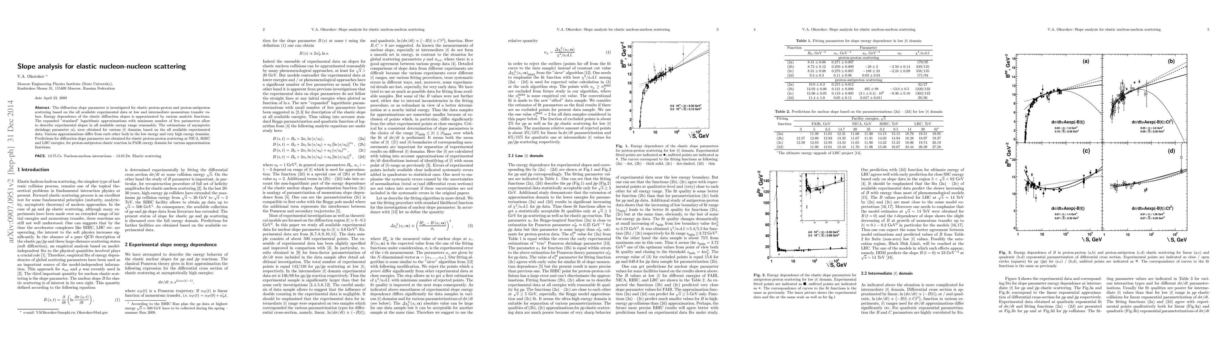 This paper analyzes the diffraction slope parameter for elastic nucleon-nucleon scattering, fitting various analytic functions to experimental data across low to intermediate momentum transfers. It provides reasonable descriptions of the energy dependence using logarithmic approximations and estimates the asymptotic shrinkage parameter for different momentum transfer domains.