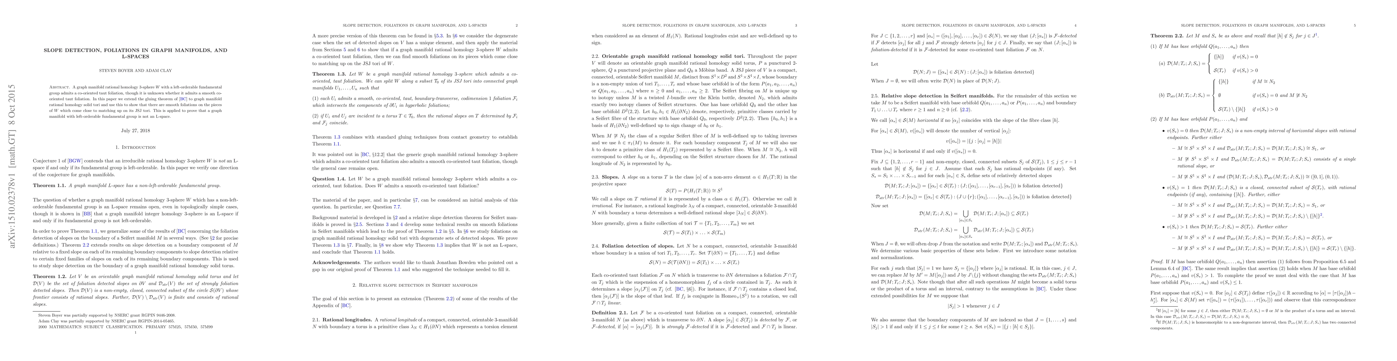 A graph manifold rational homology $3$-sphere $W$ with a left-orderable fundamental group admits a co-oriented taut foliation, though it is unknown whether it admits a smooth co-oriented taut foliation. In this paper we extend the gluing theorem of arXiv:1401.7726 to graph manifold rational homology solid tori and use this to show that there are smooth foliations on the pieces of $W$ which come close to matching up on its JSJ tori. This is applied to prove that a graph manifold with left-orderable fundamental group is not an L-space.