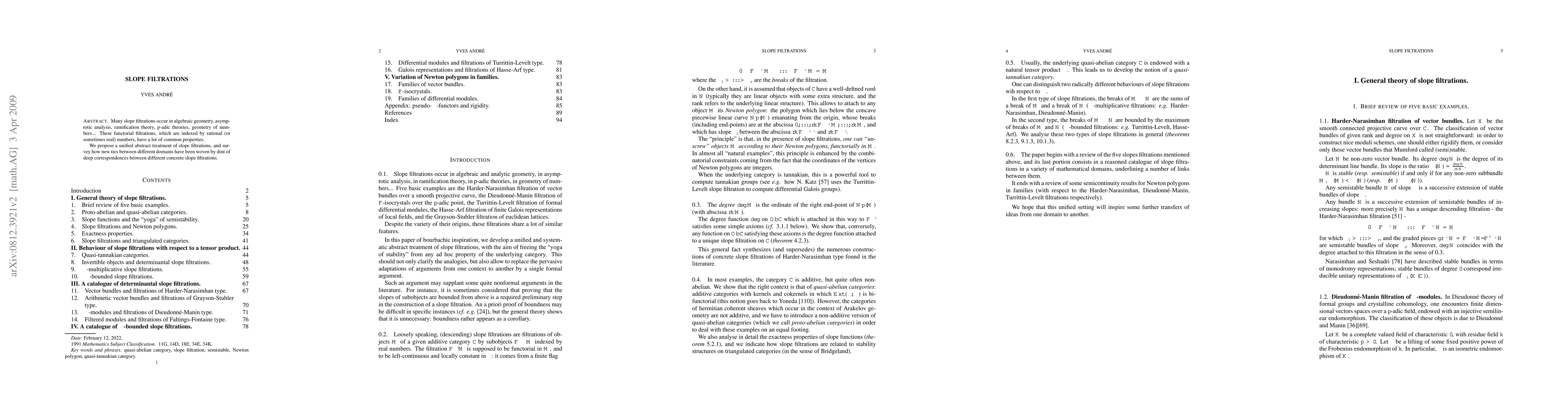 This paper presents a unified abstract treatment of slope filtrations, which are prevalent across various fields such as algebraic geometry and p-adic theories, and explores the deep correspondences that reveal new connections between these domains.