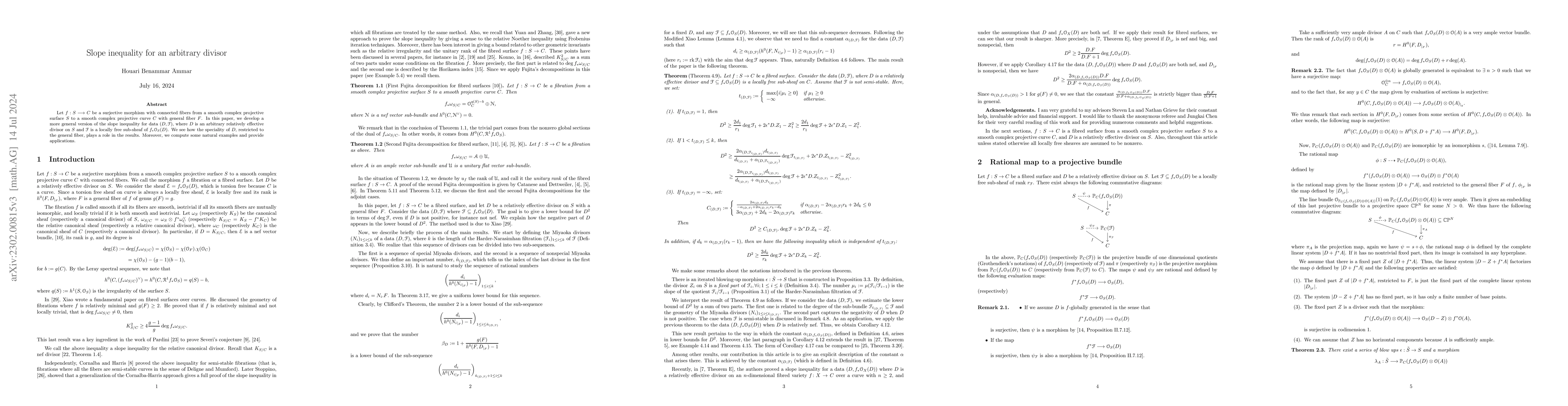 This paper develops a generalized slope inequality for a pair $(D, \mathcal{F})$ where $D$ is an arbitrary divisor on a smooth projective surface $S$ and $\mathcal{F}$ is a locally free sub-sheaf of $f_{*}\mathcal{O}_{S}(D)$. It explores the role of $D$'s speciality on the general fiber without requiring linear stability conditions.