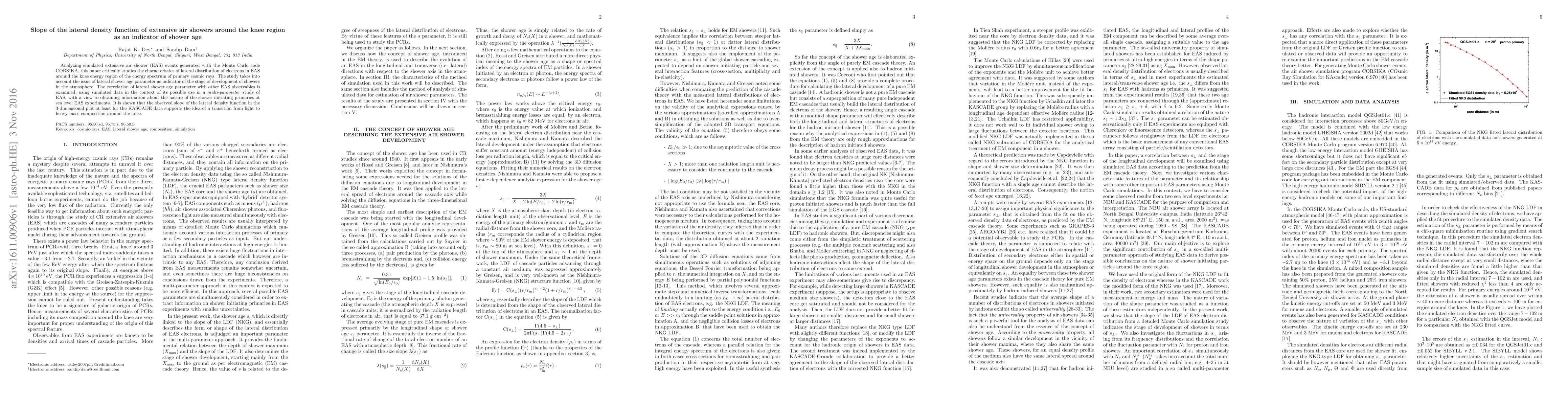 This paper investigates the slope of the lateral density function of extensive air showers (EAS) around the knee region using simulated data from CORSIKA, focusing on the lateral shower age parameter as an indicator of shower development. The study finds that the slope correlates with the transition from light to heavy mass composition of primary cosmic rays, supporting multi-parameter analyses for EAS experiments.