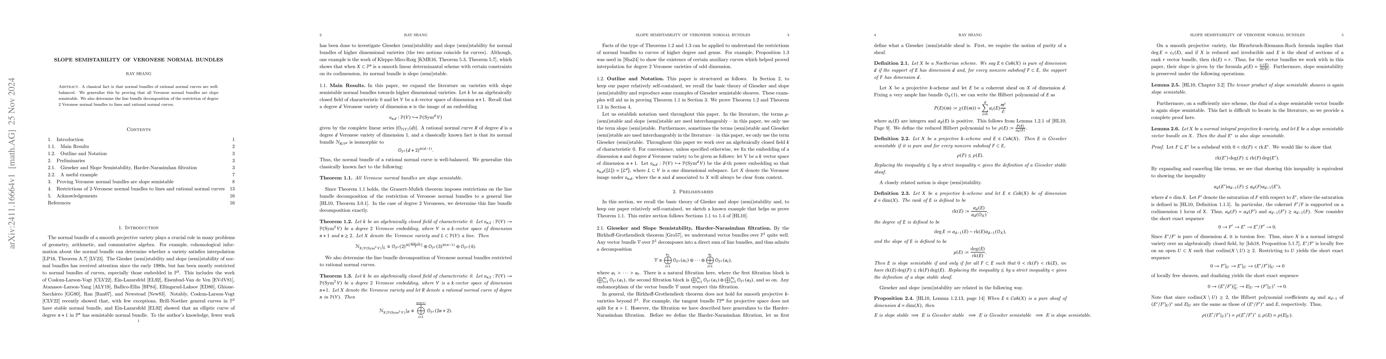 The paper introduces a detailed analysis of the slope semistability of Veronese normal bundles, providing a comprehensive understanding of their structure and properties.