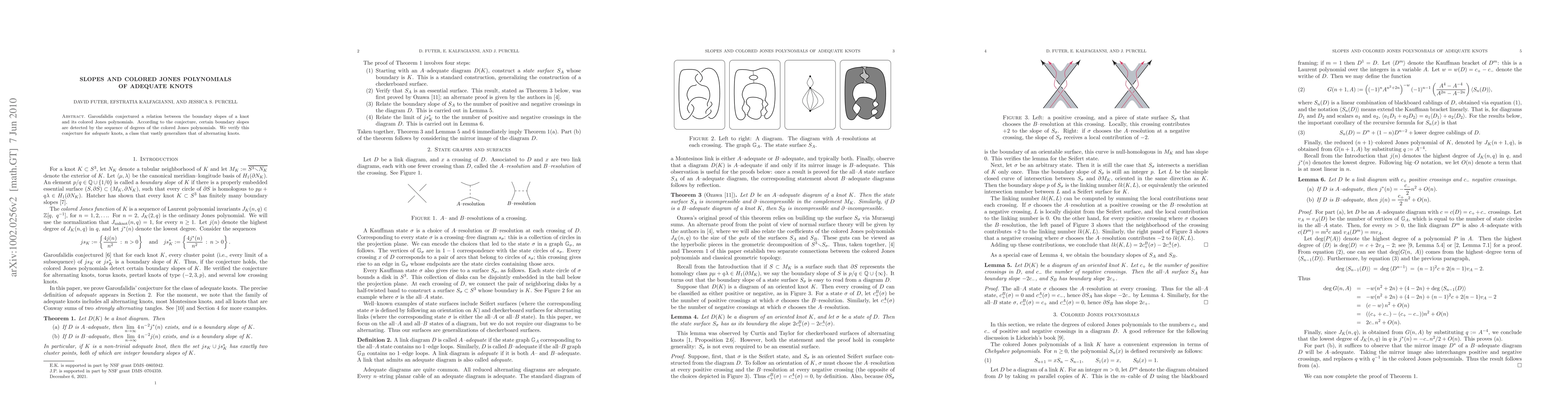 This paper verifies Garoufalidis' conjecture linking the boundary slopes of adequate knots to the degrees of their colored Jones polynomials, extending the findings to a broader class than just alternating knots. The study confirms that specific boundary slopes are detectable through the sequence of degrees of the colored Jones polynomials.