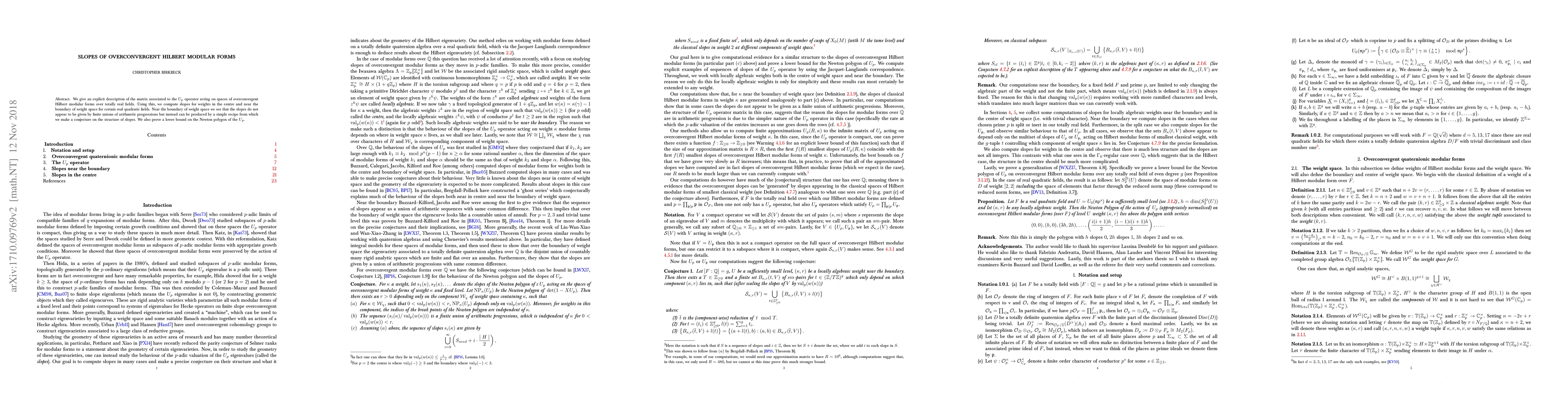 We give an explicit description of the matrix associated to the $U_p$ operator acting on spaces of overconvergent Hilbert modular forms over totally real fields. Using this, we compute slopes for weights in the centre and near the boundary of weight space for certain real quadratic fields. \added[id=h]{Near the boundary of weight space we see that the slopes do not appear to be given by finite unions of arithmetic progressions but instead can be produced by a simple recipe from which we make a conjecture on the structure of slopes. We also prove a lower bound on the Newton polygon of the $U_p$.