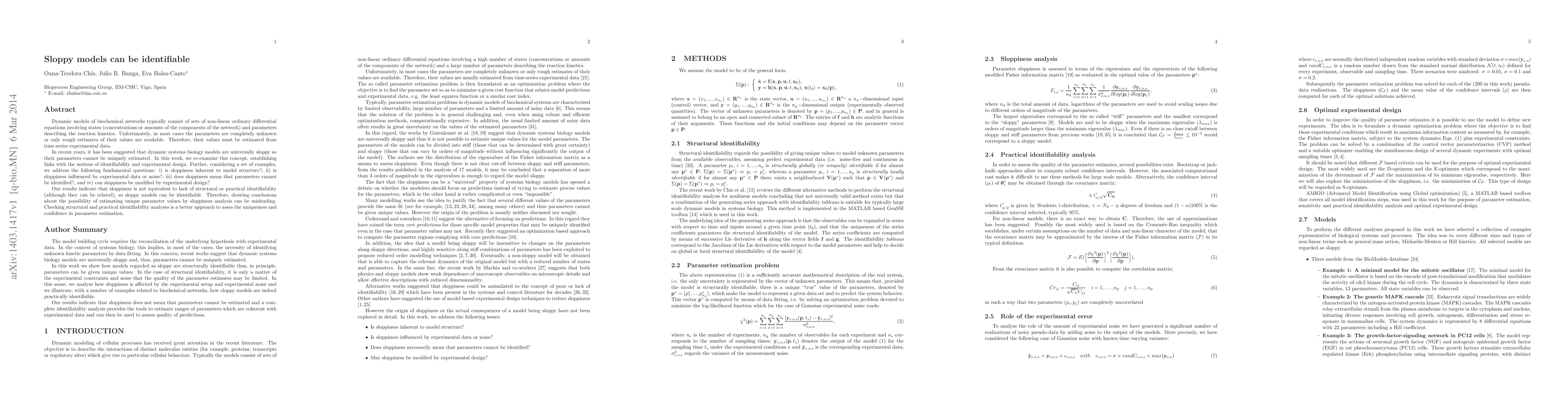 Research finds that sloppy models in biochemical networks can still be identifiable, challenging the idea that sloppiness means lack of parameter estimation uniqueness.