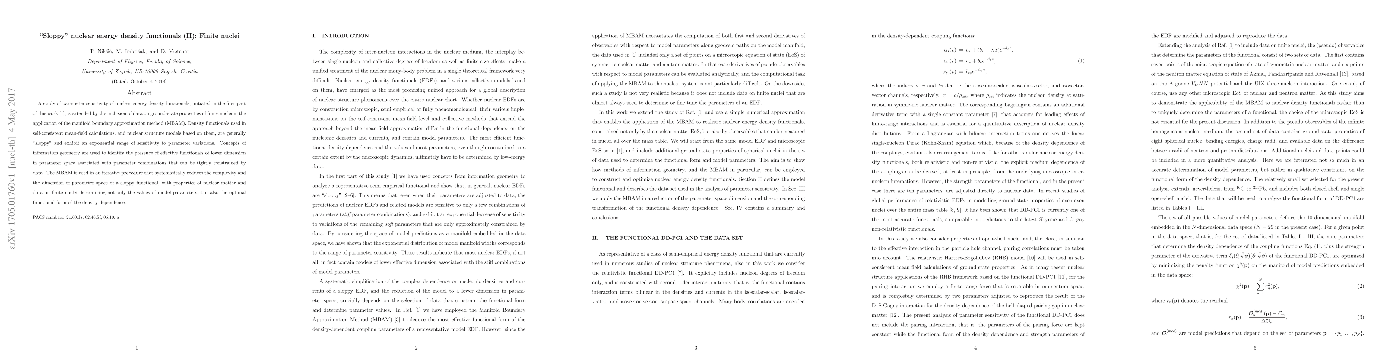 This paper extends a study on the parameter sensitivity of nuclear energy density functionals, focusing on finite nuclei. It employs the manifold boundary approximation method to iteratively reduce the complexity of "sloppy" functionals, identifying effective lower-dimensional functionals tightly constrained by nuclear matter and finite nuclei data.