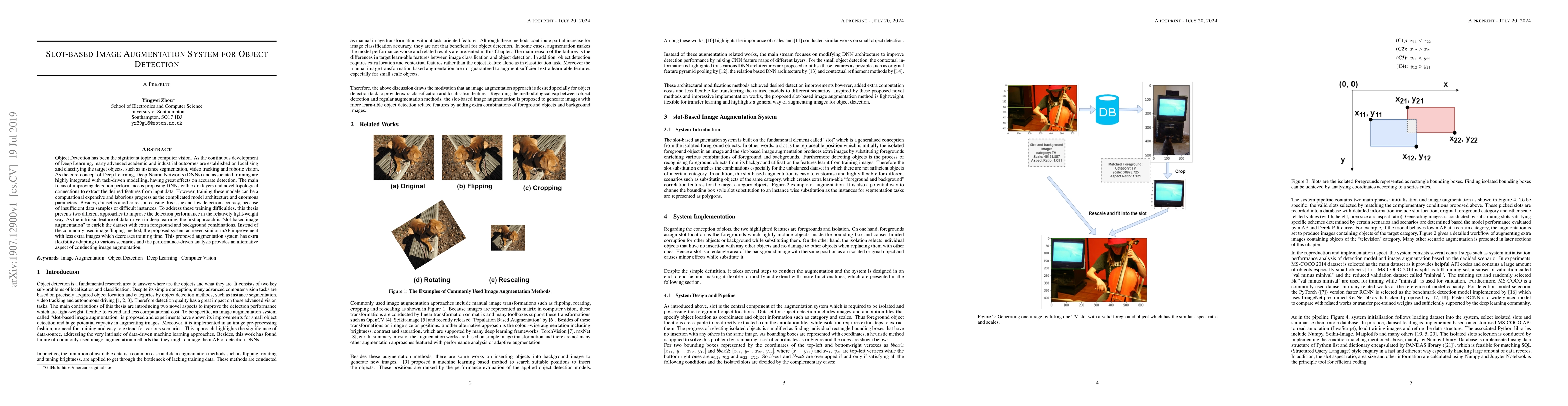 This paper presents a slot-based image augmentation system to enhance object detection performance by enriching datasets through diverse foreground and background combinations, achieving similar mAP improvements with fewer images compared to traditional methods, thus reducing training time. The system offers flexibility for various scenarios and provides an alternative approach to image augmentation.