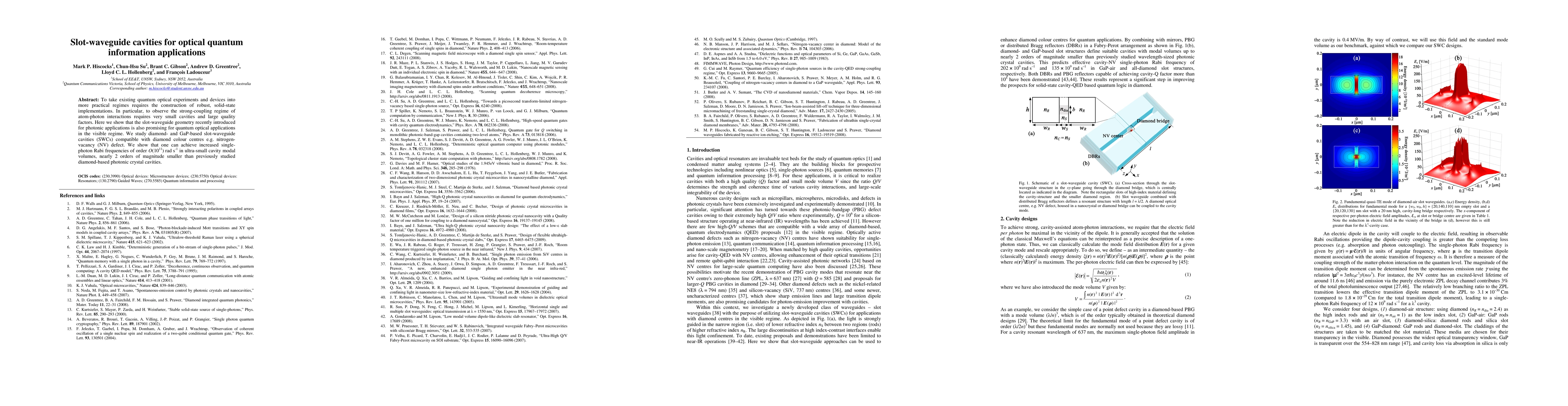 The paper presents diamond- and GaP-based slot-waveguide cavities (SWCs) that enable robust, solid-state implementations for quantum optical applications in the visible regime, achieving increased single-photon Rabi frequencies of order O(10^11) Hz within ultra-small cavity modal volumes. These cavities are compatible with diamond color centres, such as nitrogen-vacancy (NV) defects.