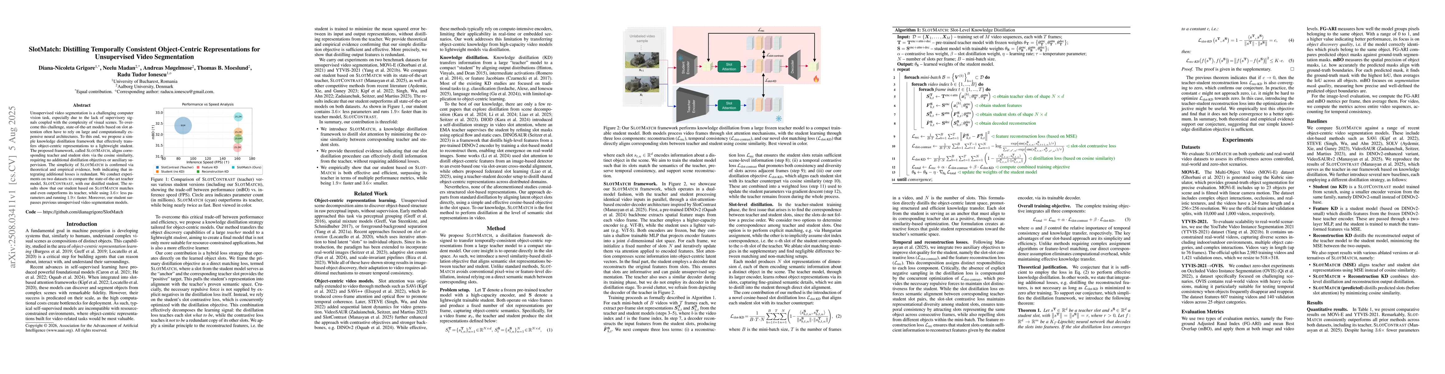 Unsupervised video segmentation is a challenging computer vision task, especially due to the lack of supervisory signals coupled with the complexity of visual scenes. To overcome this challenge, state-of-the-art models based on slot attention often have to rely on large and computationally expensive neural architectures. To this end, we propose a simple knowledge distillation framework that effectively transfers object-centric representations to a lightweight student. The proposed framework, called SlotMatch, aligns corresponding teacher and student slots via the cosine similarity, requiring no additional distillation objectives or auxiliary supervision. The simplicity of SlotMatch is confirmed via theoretical and empirical evidence, both indicating that integrating additional losses is redundant. We conduct experiments on two datasets to compare the state-of-the-art teacher model, SlotContrast, with our distilled student. The results show that our student based on SlotMatch matches and even outperforms its teacher, while using 3.6x less parameters and running 1.9x faster. Moreover, our student surpasses previous unsupervised video segmentation models.