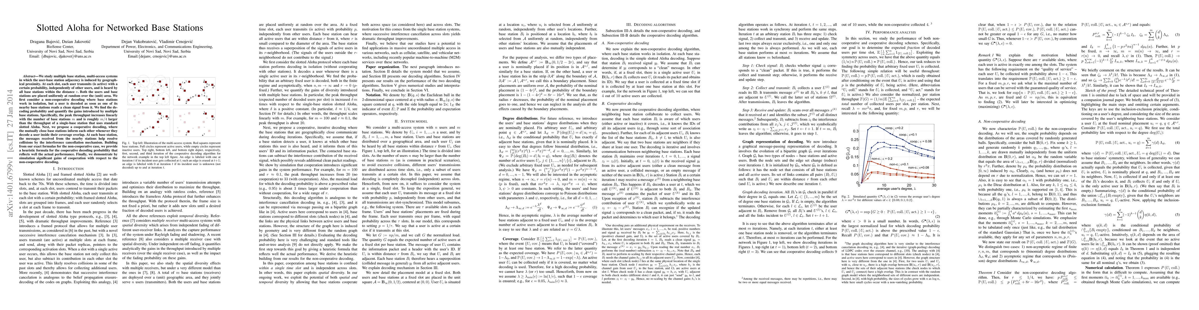 This paper investigates slotted Aloha systems with multiple base stations, analyzing both non-cooperative and cooperative decoding strategies. It finds that peak throughput increases linearly with the number of base stations, and cooperative decoding significantly enhances performance over non-cooperative methods.