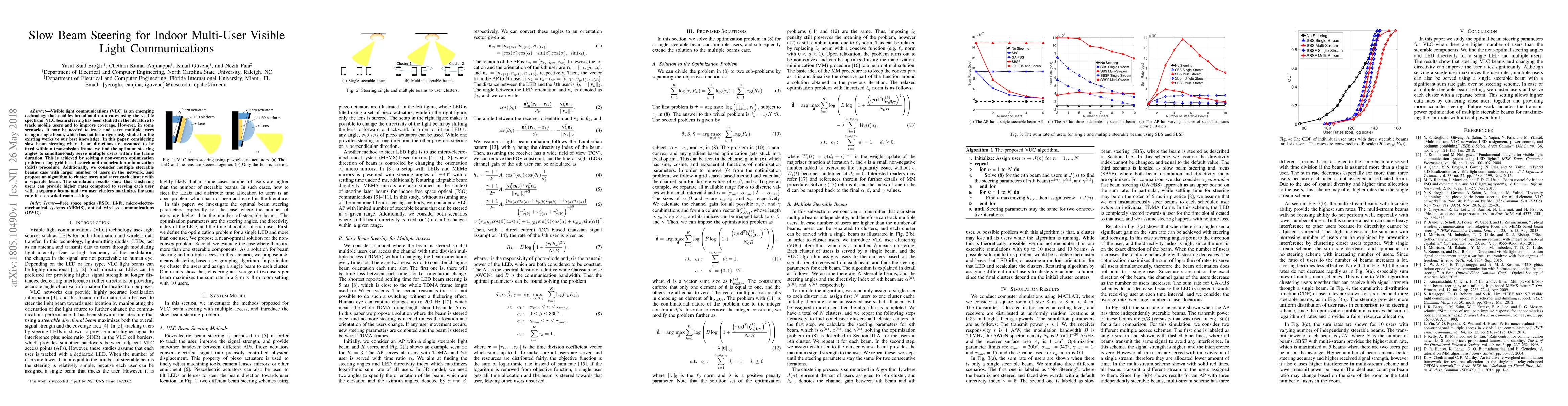 Researchers developed a method for slow beam steering in indoor visible light communications to serve multiple users simultaneously, achieving higher rates than separate beams. Their simulation results showed that clustering users into two groups maximizes sum rate in crowded environments.
