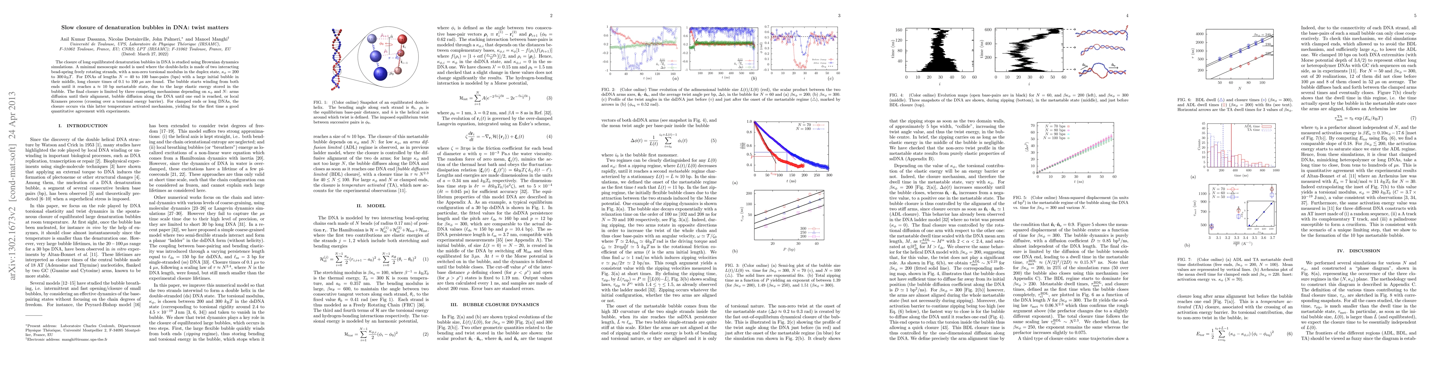 This study uses Brownian dynamics simulations to investigate the slow closure of denaturation bubbles in DNA, revealing that closure times range from 0.1 to 100 microseconds and depend on the torsional modulus and DNA length. The closure is influenced by diffusion, bubble movement, or a temperature-activated mechanism, providing quantitative agreement with experimental observations.