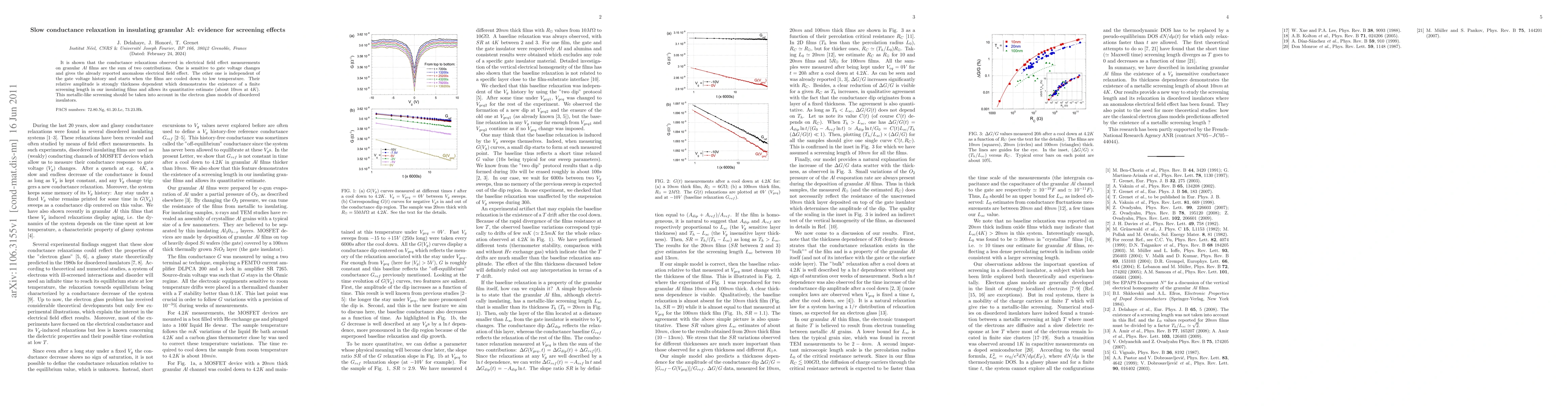 Research finds that insulating granular aluminum films exhibit two types of conductance relaxations: one sensitive to gate voltage and another independent of it, which is driven by metallic-like screening effects at low temperatures.