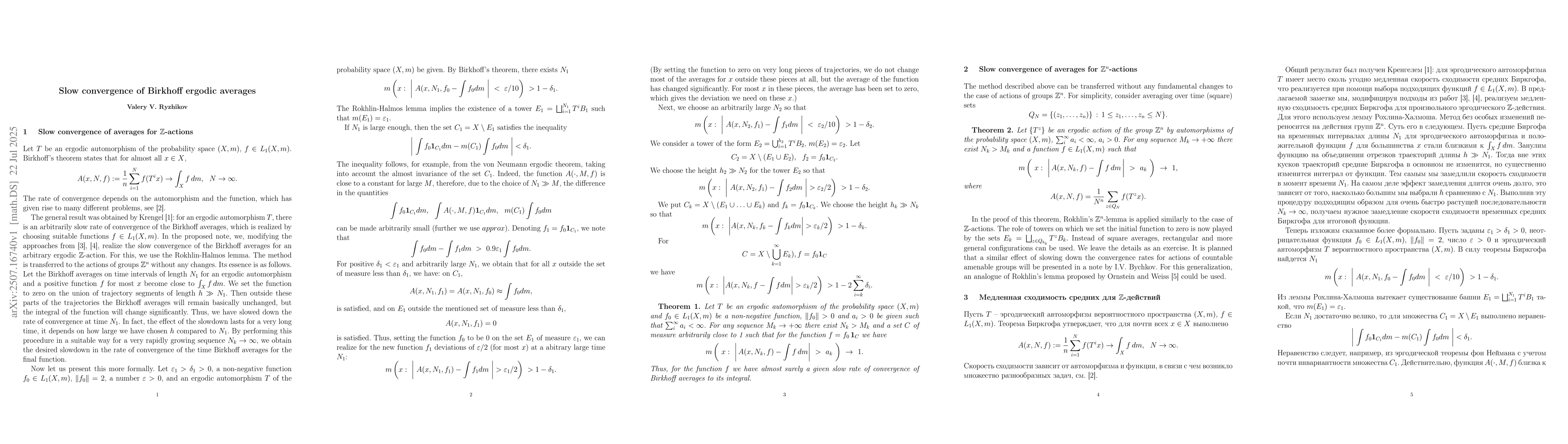 Let $\{T^z\}$ be an ergodic action of the group $Z^n$ by automorphisms of the probability space $(X,m)$, $\sum_{i}^\infty a_i<\infty$, $a_i>0$. For any sequence $M_k\to +\infty$ there exist $N_k>M_k$ and a function $ f\in L_1(X,m)$ such that $$m\left(\ x:\ \left|\, A(x,N_k,f) - \int f \, dm\, \right|\ >\ a_k \ \right)\ \to\ 1,$$ where $$A(x,N,f) =\frac 1 {N^n} \sum_{z\in Q_N} f(T^{z}x),$$ $$Q_N=\{(z_1,\dots,z_n)\}\, :\, 1\leq z_1,\dots,z_n\leq N\}.$$