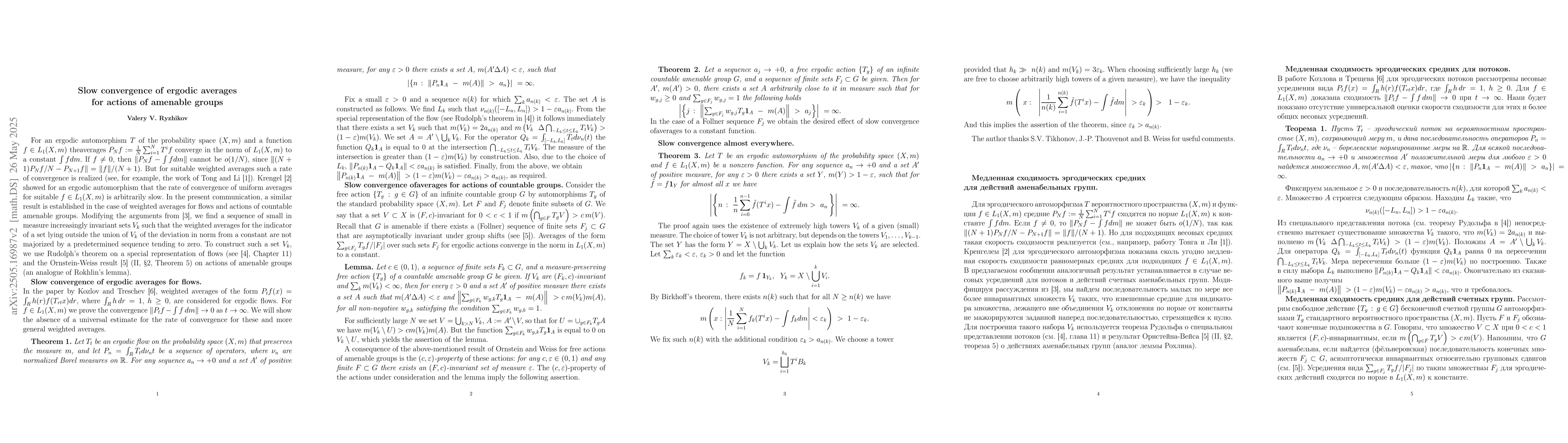 The research demonstrates slow convergence of weighted ergodic averages for flows and actions of countable amenable groups, employing techniques from ergodic theory and amenable group theory.