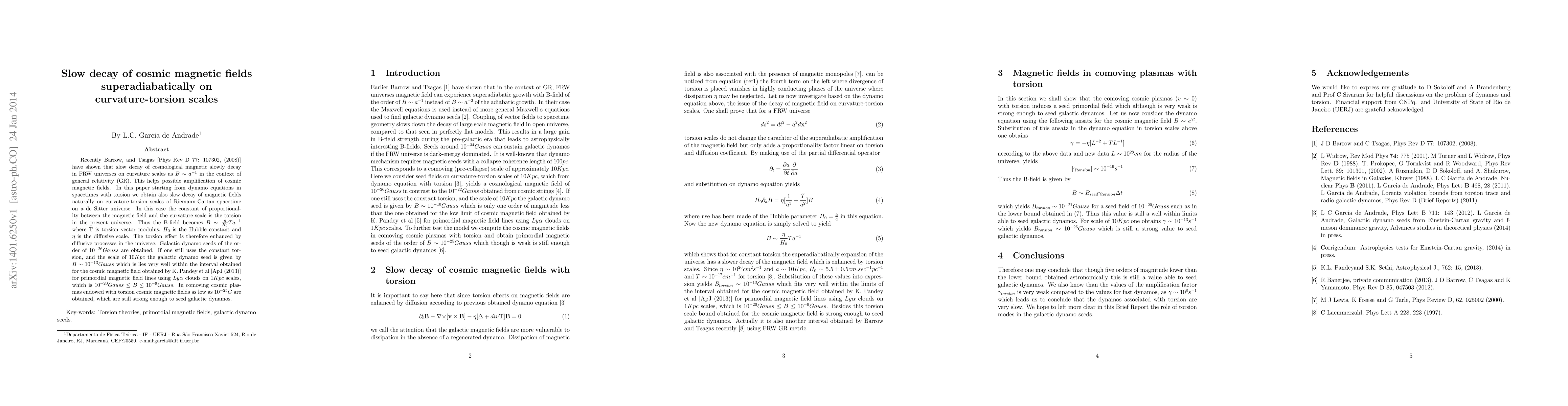 This paper extends the study of cosmic magnetic field decay from general relativity to Riemann-Cartan spacetimes with torsion, showing that magnetic fields decay slowly in a de Sitter universe on curvature-torsion scales, with the decay rate proportional to the torsion vector modulus.
