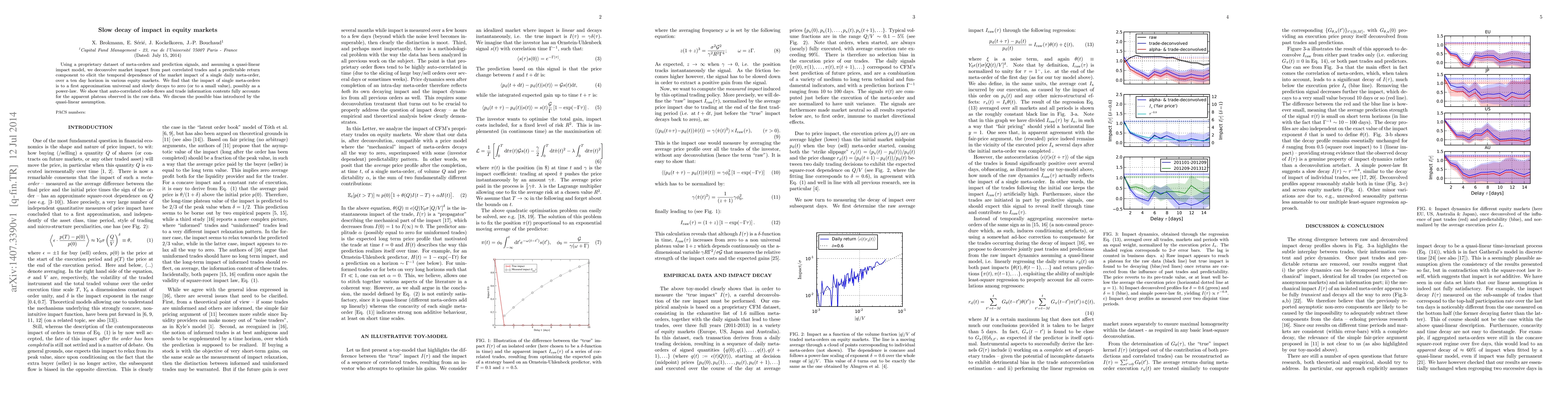 Using a proprietary dataset of meta-orders and prediction signals, and assuming a quasi-linear impact model, we deconvolve market impact from past correlated trades and a predictable return component to elicit the temporal dependence of the market impact of a single daily meta-order, over a ten day horizon in various equity markets. We find that the impact of single meta-orders is to a first approximation universal and slowly decays to zero (or to a small value), possibly as a power-law. We show that auto-correlated order-flows and trade information contents fully accounts for the apparent plateau observed in the raw data. We discuss the possible bias introduced by the quasi-linear assumption.