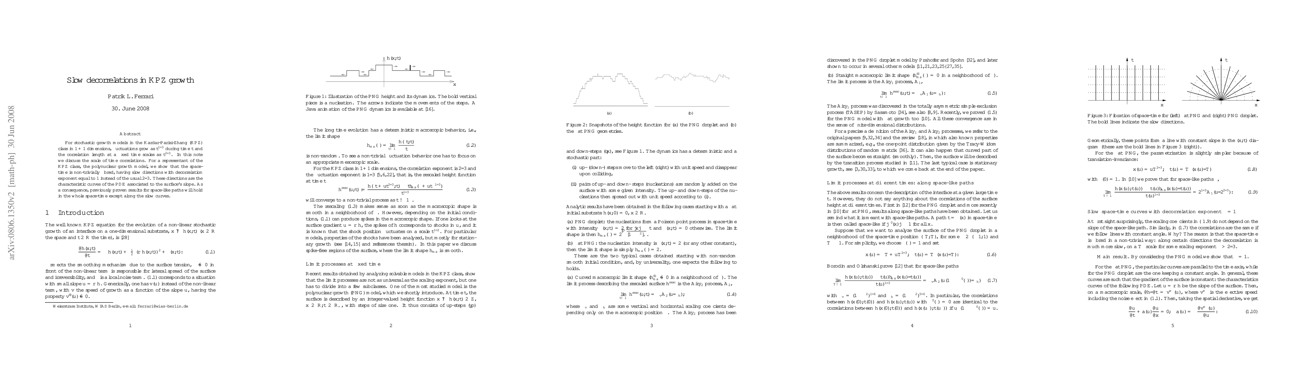 Development of a detailed analysis of space-time correlations in KPZ growth models, identifying slow decorrelation directions and proving associated theorems.