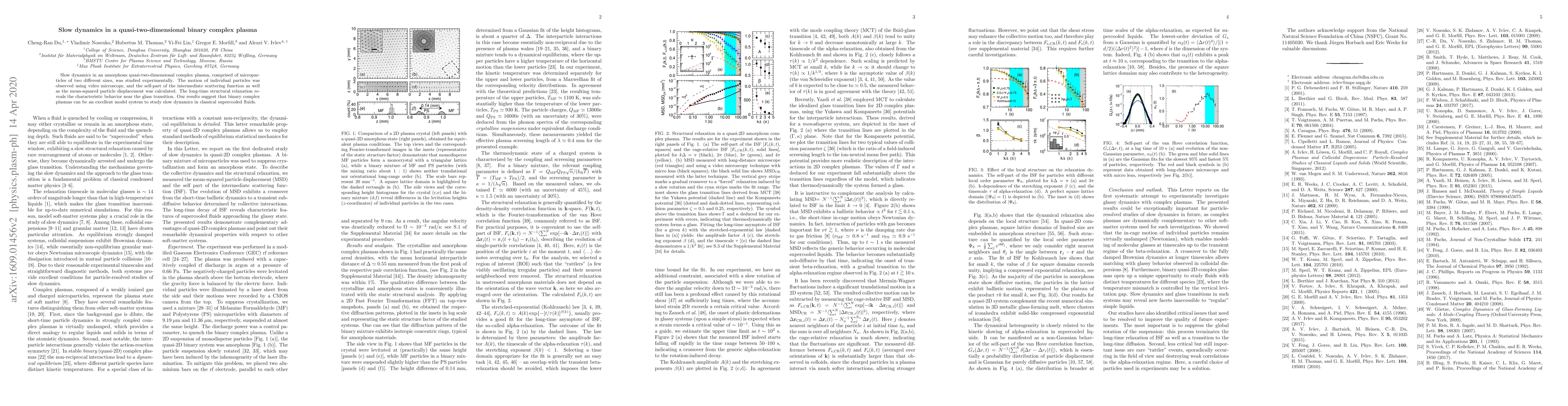This study experimentally investigates the slow dynamics in a quasi-two-dimensional binary complex plasma using video microscopy to observe microparticle motion. The findings reveal characteristic behavior near the glass transition, suggesting that binary complex plasmas serve as an excellent model for studying slow dynamics in supercooled fluids.