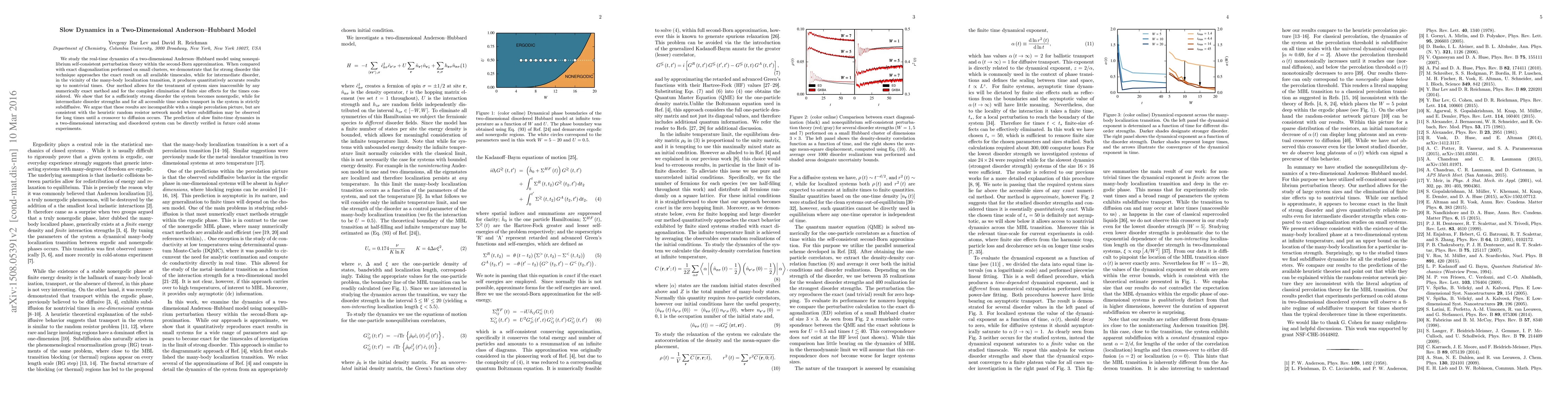 Researchers study the dynamics of a two-dimensional Anderson-Hubbard model with strong disorder, finding that it becomes nonergodic for sufficiently strong disorder and exhibits subdiffusive behavior for intermediate disorder strengths.