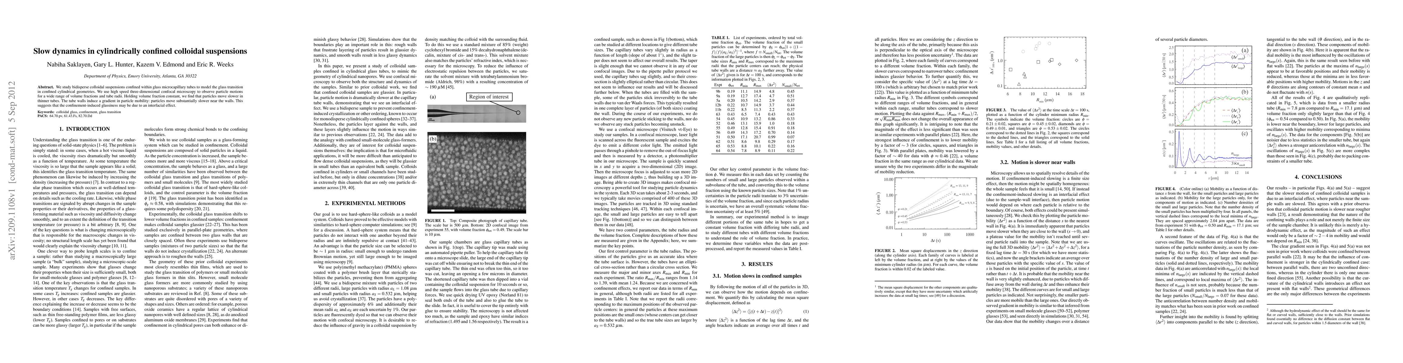 This study investigates the slow dynamics of bidisperse colloidal suspensions in cylindrical microcapillary tubes, revealing that particles move slower in thinner tubes and significantly slower near the tube walls, suggesting confinement-induced glassiness may stem from interfacial effects.