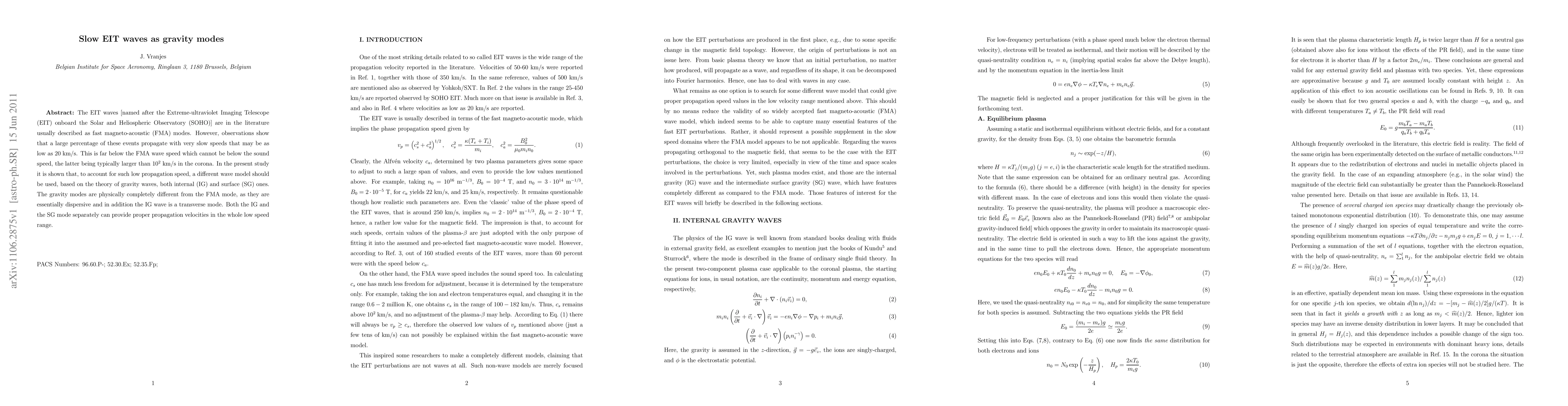 This study reveals that a significant portion of EIT waves, typically classified as fast magneto-acoustic modes, propagate much slower than expected, suggesting they may instead be gravity modes. Gravity waves, both internal and surface, offer a better model to explain these low propagation speeds.