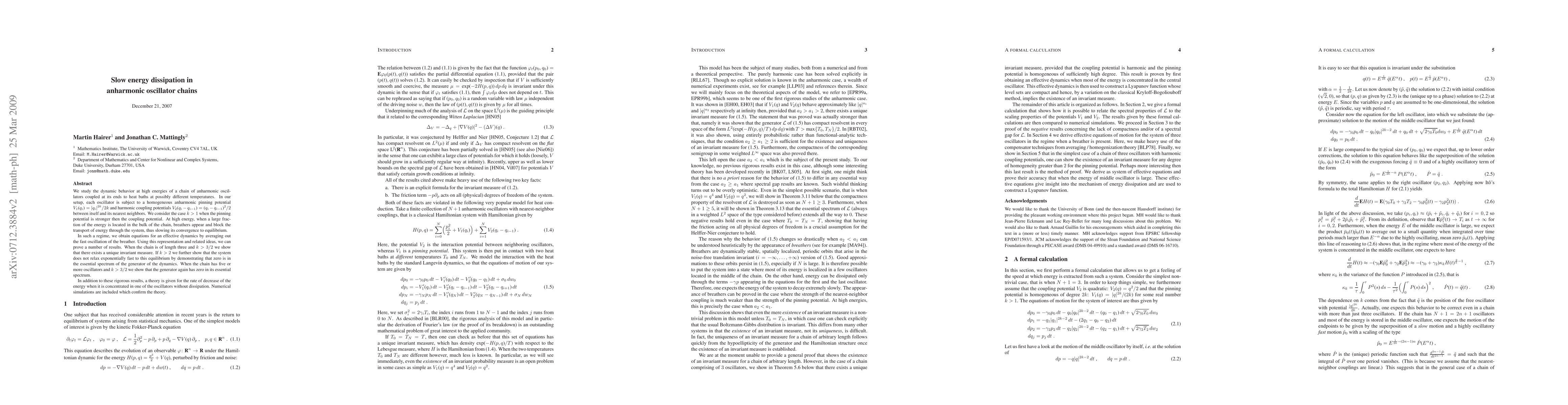 Researchers study how energy is transferred in a chain of oscillators with strong pinning potential, finding that high-energy situations can lead to 'breathers' that slow down the system's convergence to equilibrium.