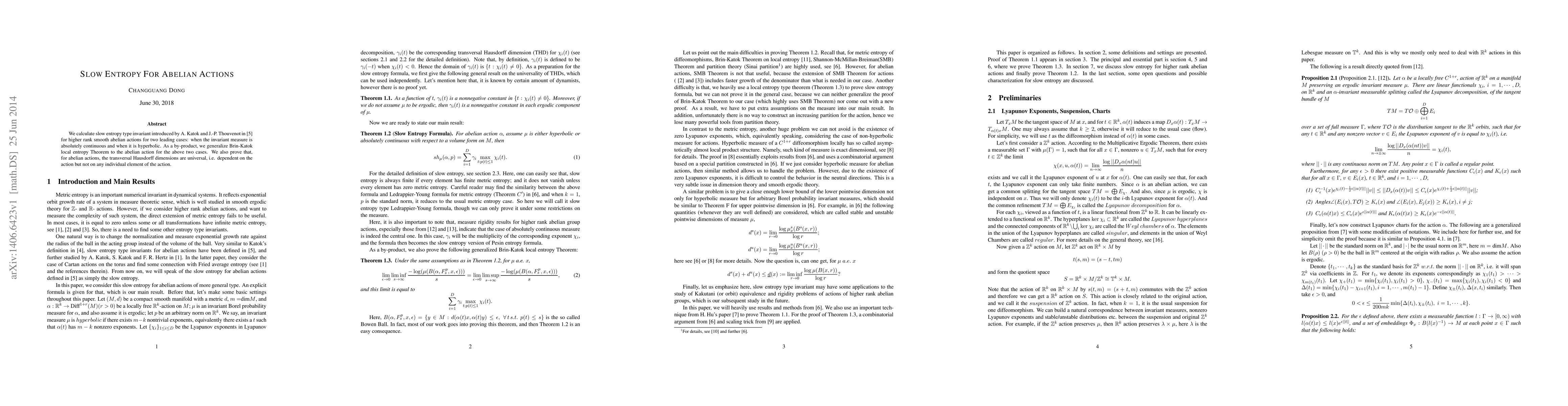 This paper calculates slow entropy for higher rank smooth abelian actions, focusing on cases where the invariant measure is either absolutely continuous or hyperbolic. It also generalizes the Brin-Katok local entropy theorem and proves that transversal Hausdorff dimensions for abelian actions are universal.