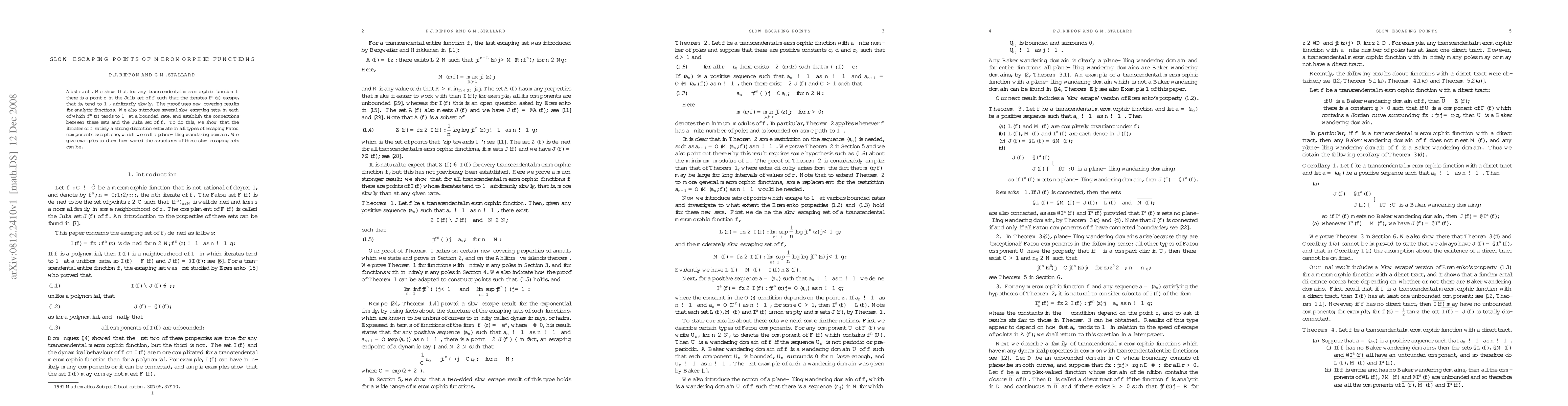 The paper introduces new covering results and distortion estimates, leading to the identification and characterization of slow escaping points in meromorphic dynamics.