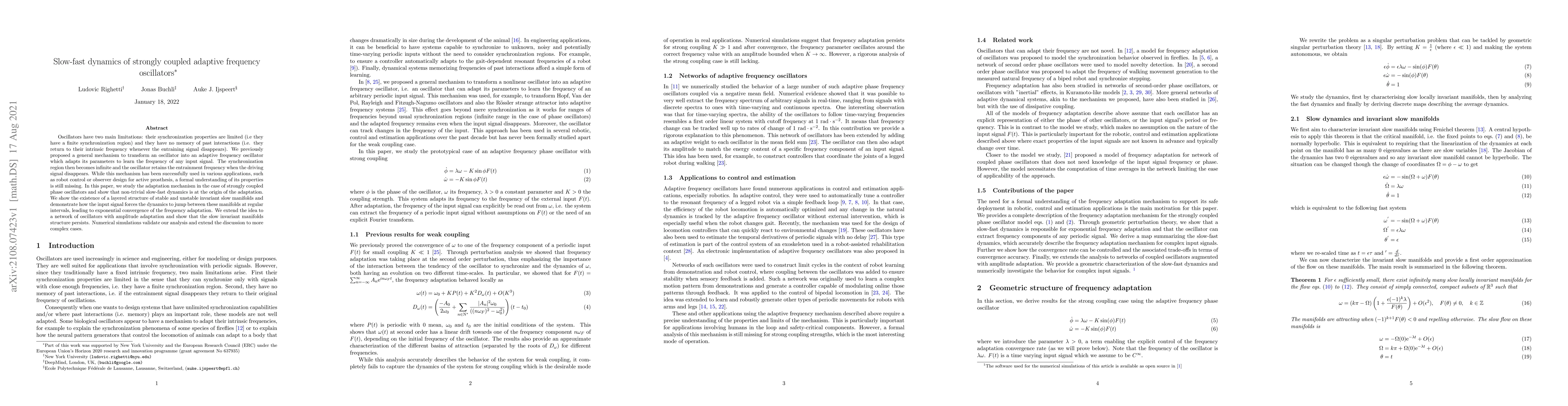 Researchers study how adaptive frequency oscillators learn to synchronize with input signals, discovering slow-fast dynamics that lead to exponential convergence of frequency adaptation.