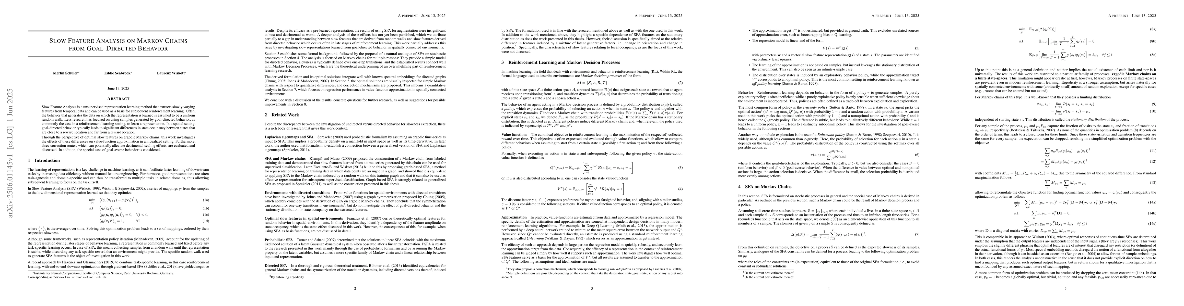 Slow Feature Analysis is a unsupervised representation learning method that extracts slowly varying features from temporal data and can be used as a basis for subsequent reinforcement learning. Often, the behavior that generates the data on which the representation is learned is assumed to be a uniform random walk. Less research has focused on using samples generated by goal-directed behavior, as commonly the case in a reinforcement learning setting, to learn a representation. In a spatial setting, goal-directed behavior typically leads to significant differences in state occupancy between states that are close to a reward location and far from a reward location. Through the perspective of optimal slow features on ergodic Markov chains, this work investigates the effects of these differences on value-function approximation in an idealized setting. Furthermore, three correction routes, which can potentially alleviate detrimental scaling effects, are evaluated and discussed. In addition, the special case of goal-averse behavior is considered.