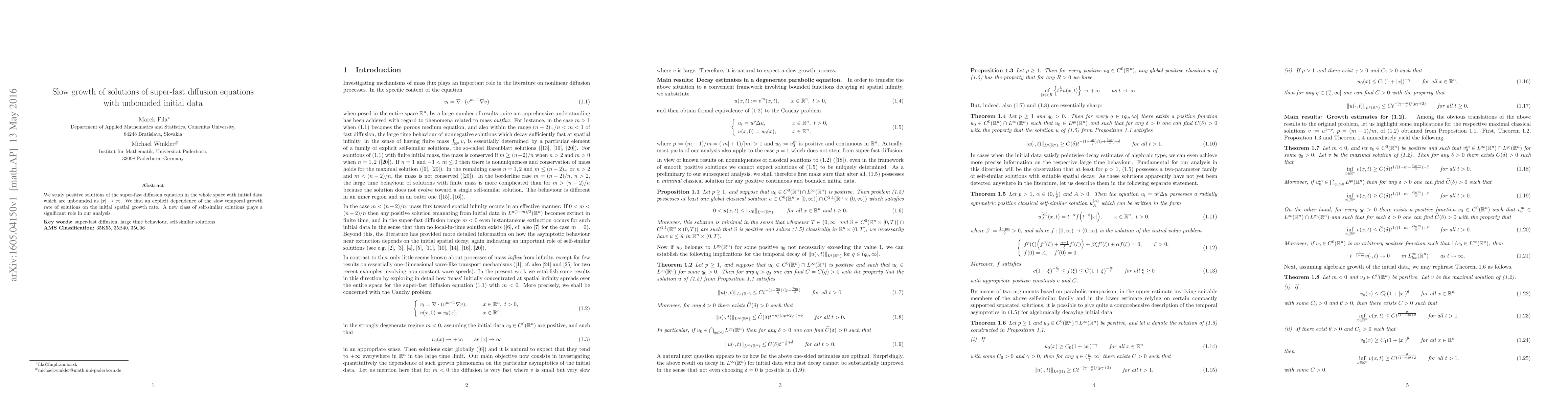 This research examines positive solutions of a specific diffusion equation across all space with initially unbounded data. It reveals how the slow temporal growth of these solutions correlates with the spatial growth rate of the initial data, identifying a new class of self-similar solutions as key in this analysis.