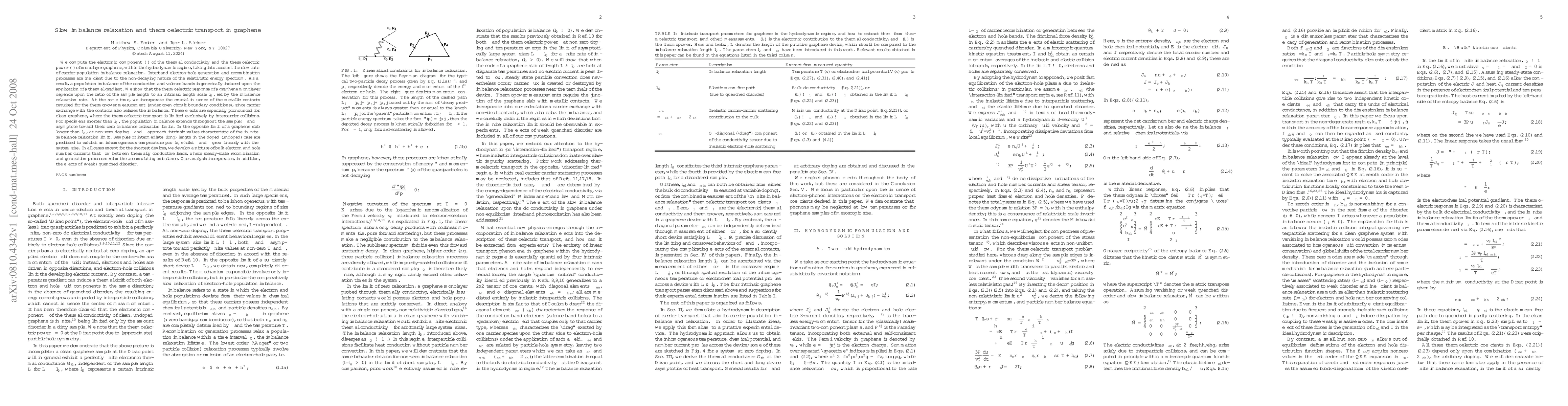 We compute the electronic component of the thermal conductivity (TC) and the thermoelectric power (TEP) of monolayer graphene, within the hydrodynamic regime, taking into account the slow rate of carrier population imbalance relaxation. Interband electron-hole generation and recombination processes are inefficient due to the non-decaying nature of the relativistic energy spectrum. As a result, a population imbalance of the conduction and valence bands is generically induced upon the application of a thermal gradient. We show that the thermoelectric response of a graphene monolayer depends upon the ratio of the sample length to an intrinsic length scale l_Q, set by the imbalance relaxation rate. At the same time, we incorporate the crucial influence of the metallic contacts required for the thermopower measurement (under open circuit boundary conditions), since carrier exchange with the contacts also relaxes the imbalance. These effects are especially pronounced for clean graphene, where the thermoelectric transport is limited exclusively by intercarrier collisions. For specimens shorter than l_Q, the population imbalance extends throughout the sample; the TC and TEP asymptote toward their zero imbalance relaxation limits. In the opposite limit of a graphene slab longer than l_Q, at non-zero doping the TC and TEP approach intrinsic values characteristic of the infinite imbalance relaxation limit. Samples of intermediate (long) length in the doped (undoped) case are predicted to exhibit an inhomogeneous temperature profile, whilst the TC and TEP grow linearly with the system size. In all cases except for the shortest devices, we develop a picture of bulk electron and hole number currents that flow between thermally conductive leads, where steady-state recombination and generation processes relax the accumulating imbalance.