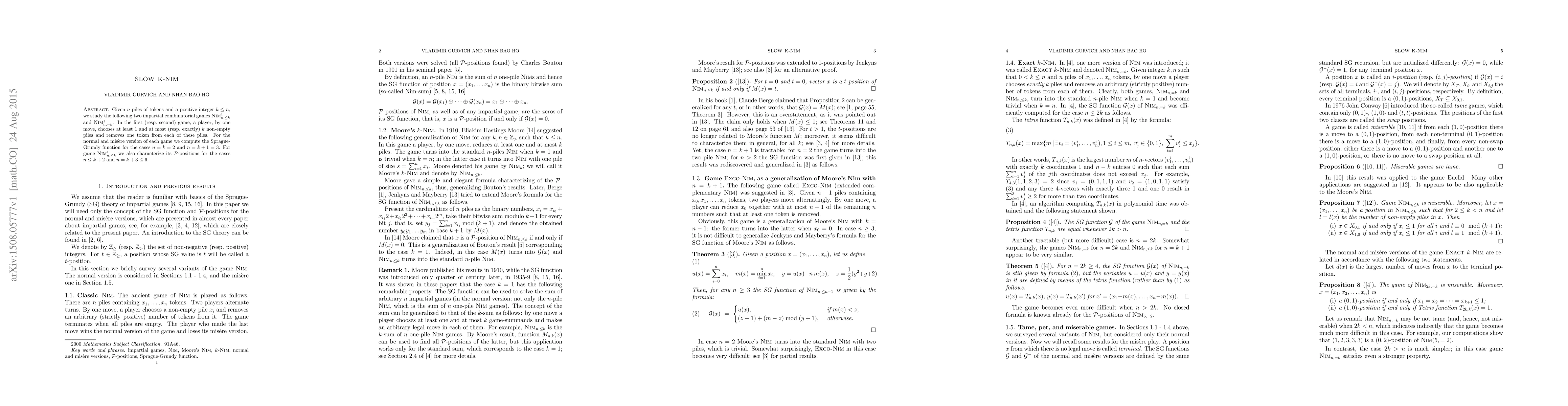 This paper explores two variants of the combinatorial game Nim, denoted as Nim$^1_{n, \leq k}$ and Nim$^1_{n, =k}$, where players can remove tokens from up to $k$ non-empty piles in each move. It computes the Sprague-Grundy function for these games in specific cases and characterizes P-positions for certain configurations.
